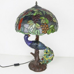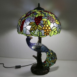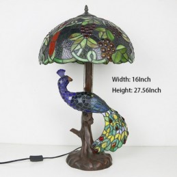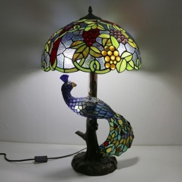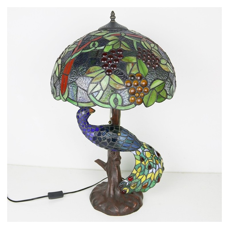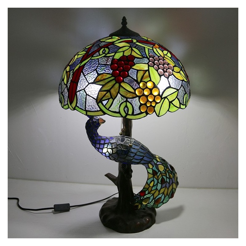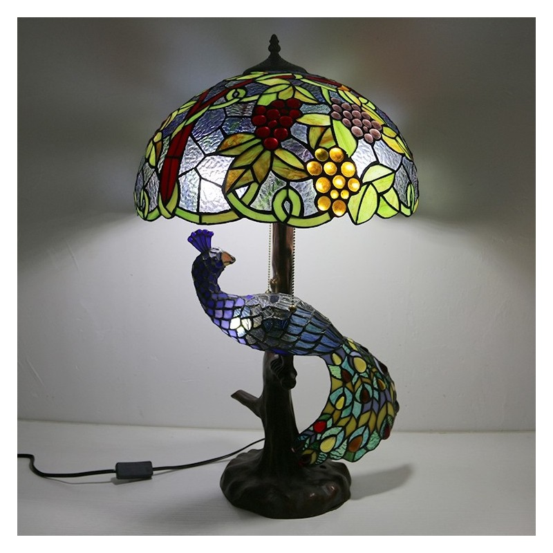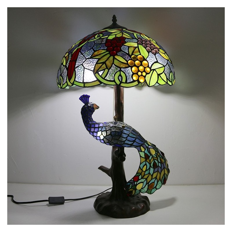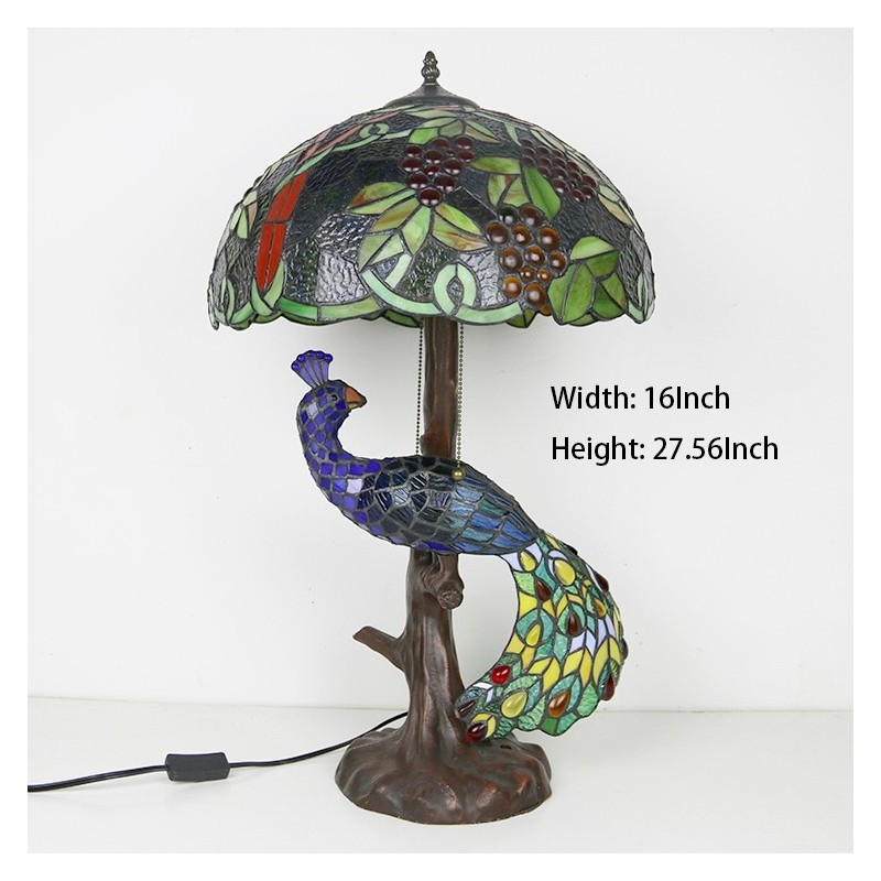 Tiffany stila galda lampa ar pāva pamatni 16 collu antīkas vīnogu vitrāžas lampas galda apgaismojums