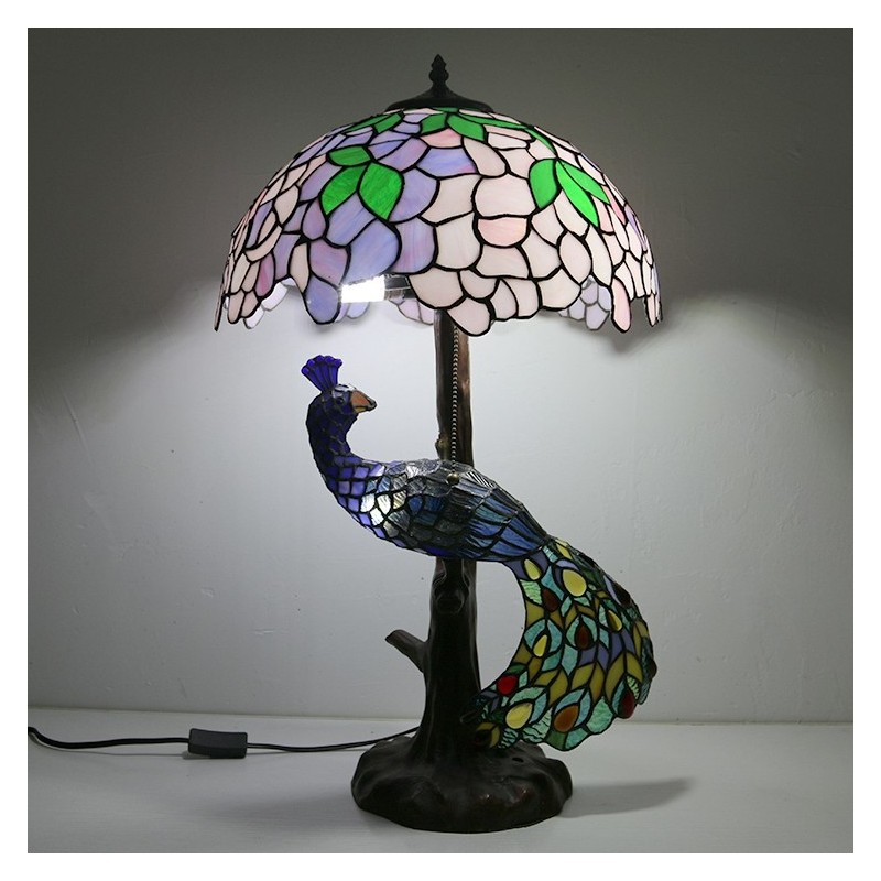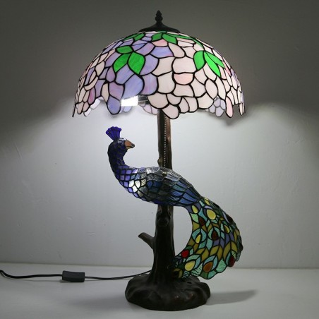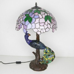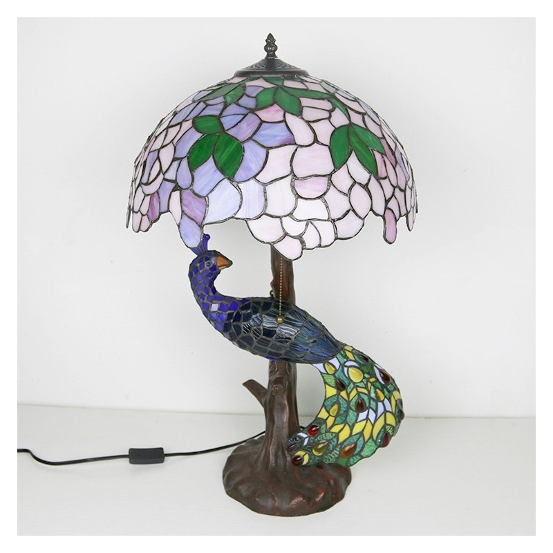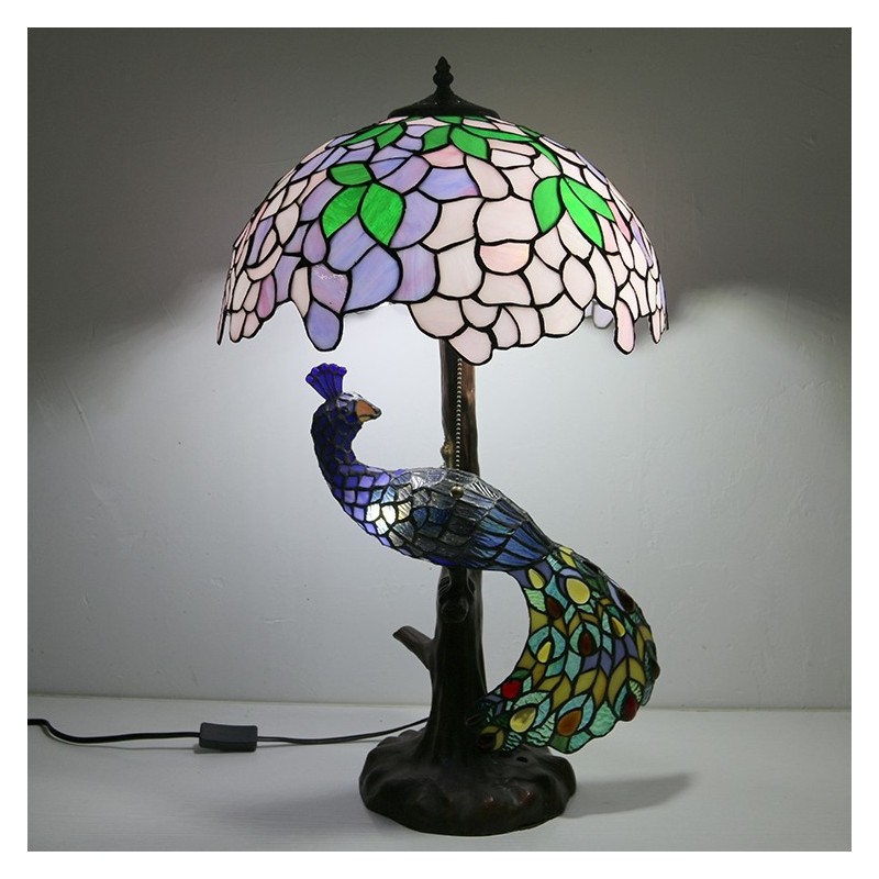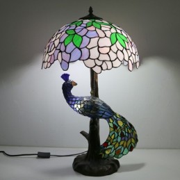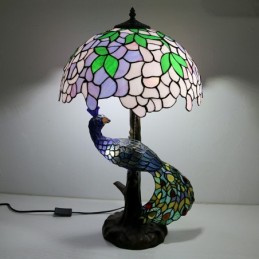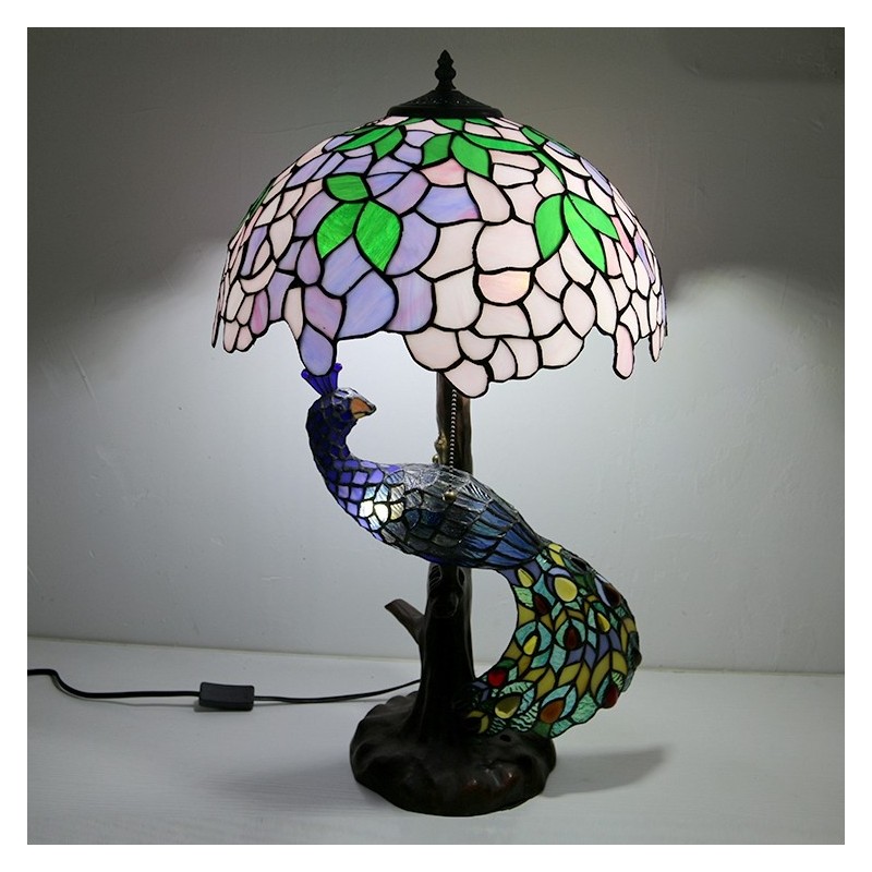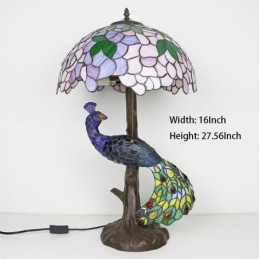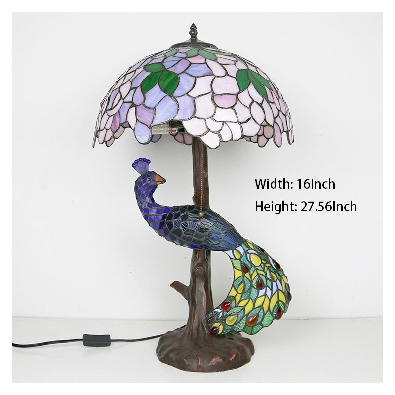 16 collu Wisteria vitrāžas lampas galda lampa Tiffany stila galda lampa ar stikla pāva un koka pamatni