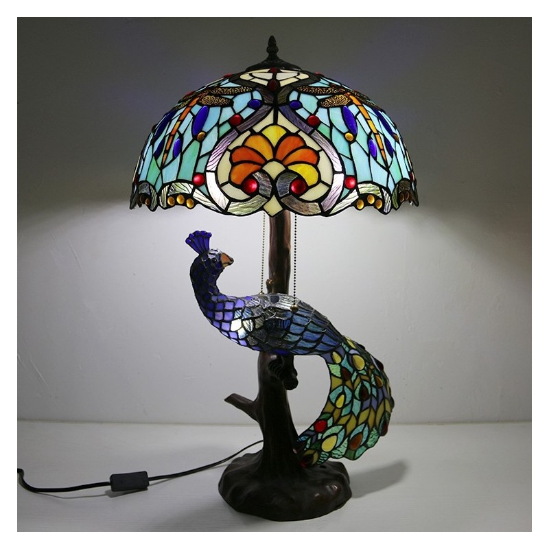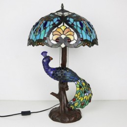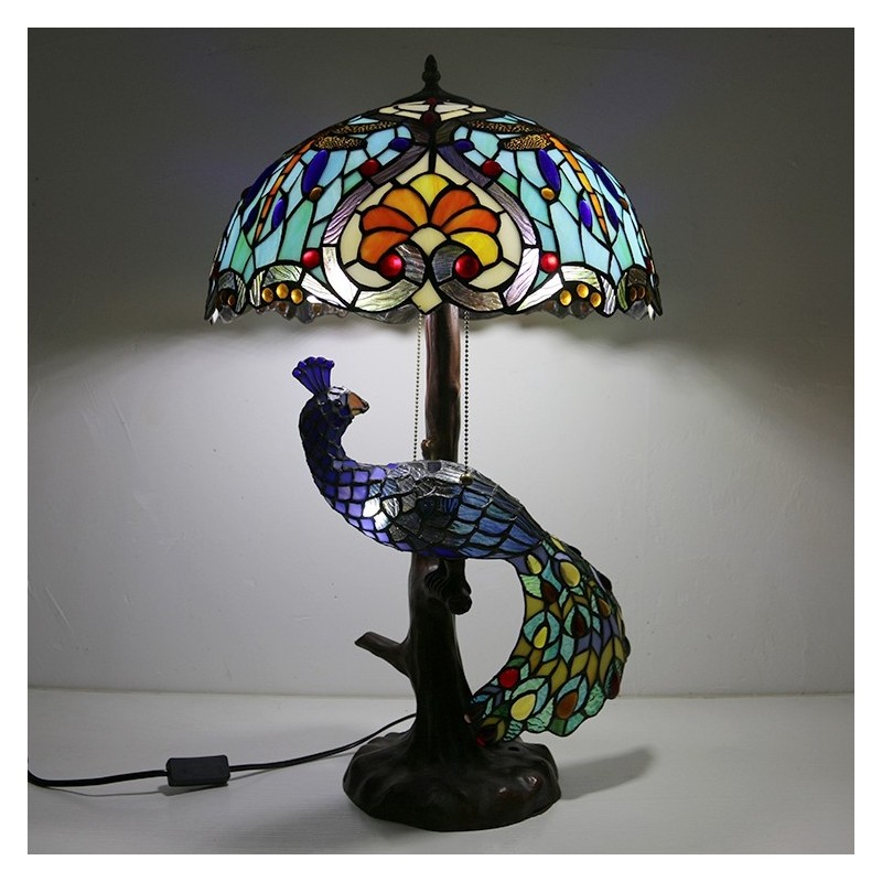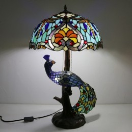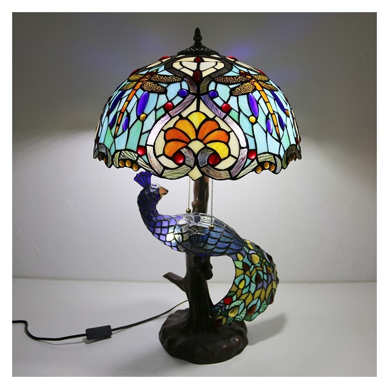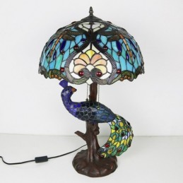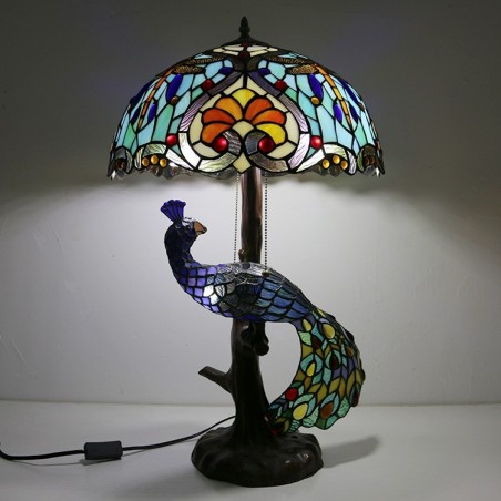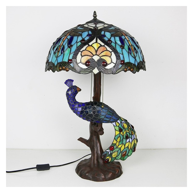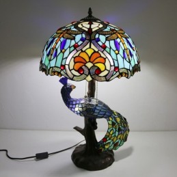 16 collu unikāla vitrāžas lampas galda lampa Tiffany stila galda lampa ar stikla pāva un koka pamatni