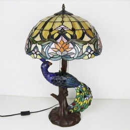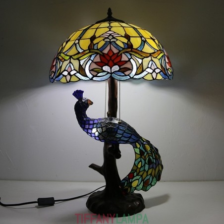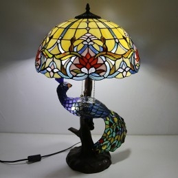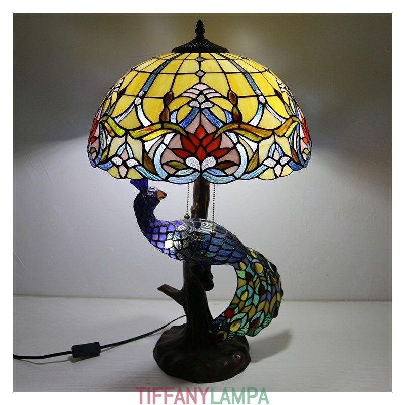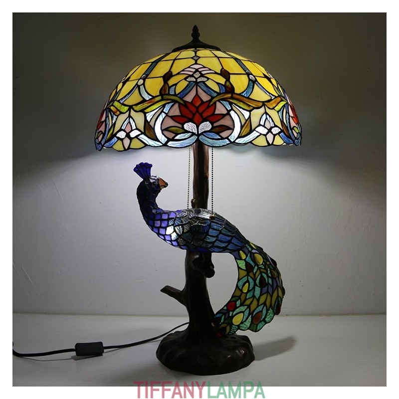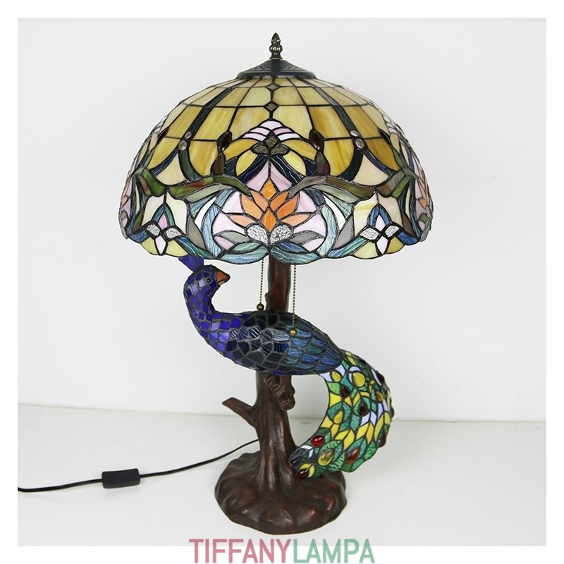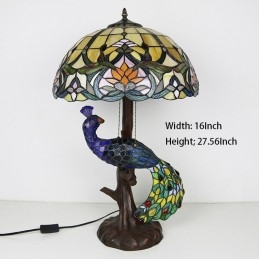 16 collu antīka vitrāžas lampas galda lampa Tiffany stila galda lampa ar stikla pāva un koka pamatni