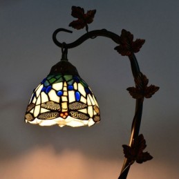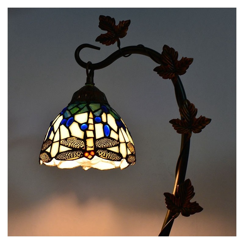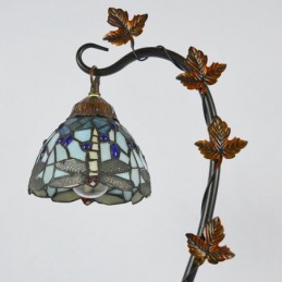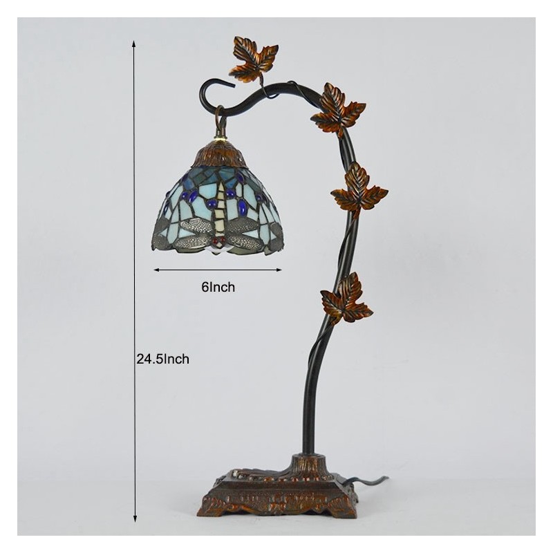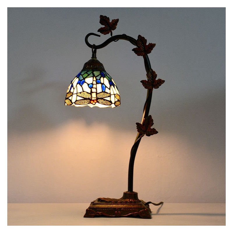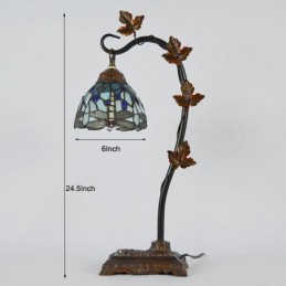 Mājas dekors Tiffany galda lampa Dragonfly vitrāžas lampas rakstāmgalds Light Morning Glory Vine metāla pamatne