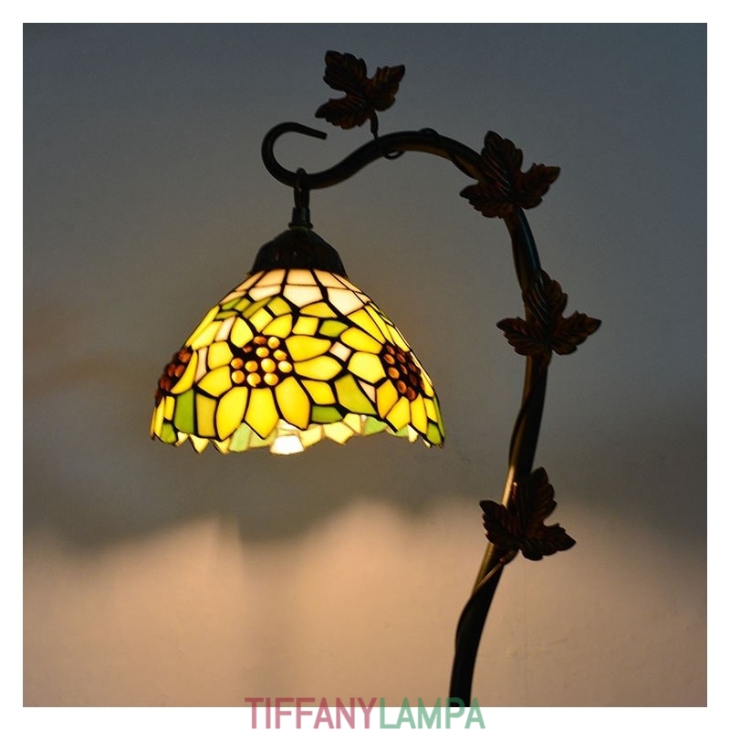 Mājas dekors Tiffany galda lampa saulespuķu vitrāžas lampas rakstāmgalds Light Morning Glory Vine metāla pamatne