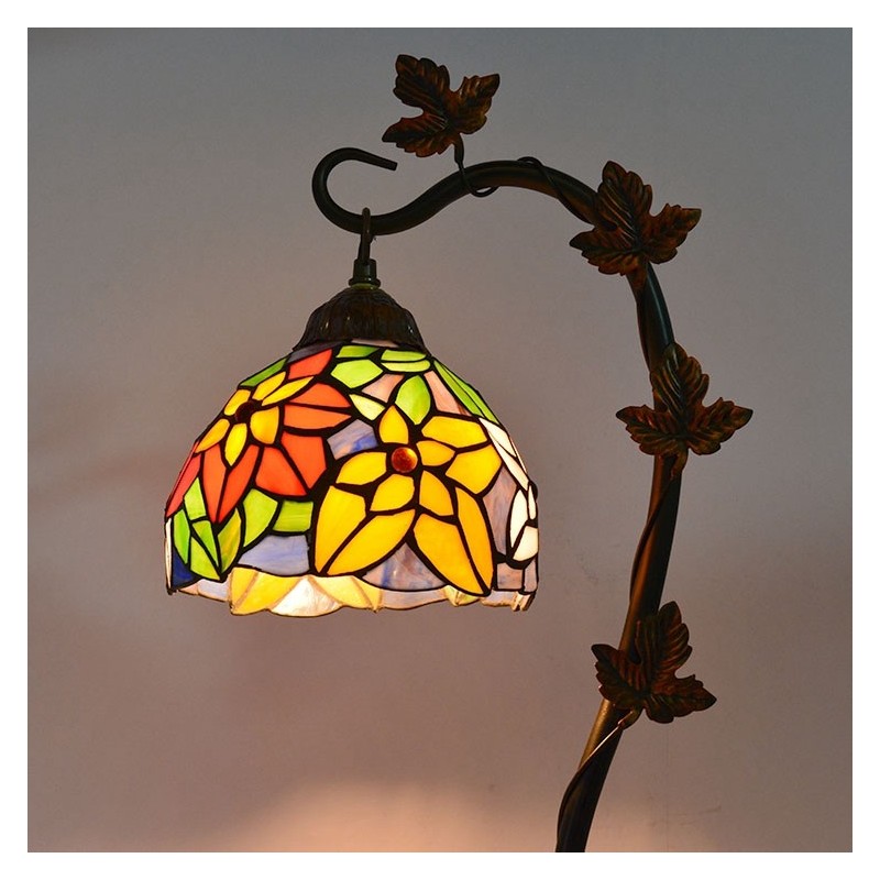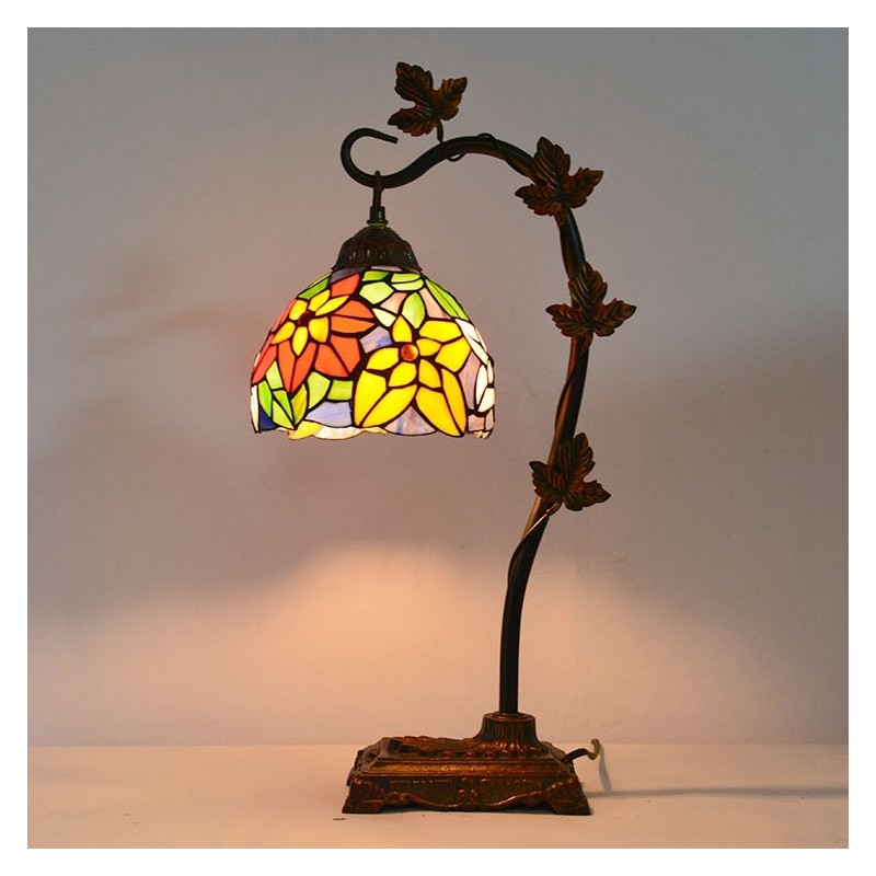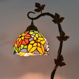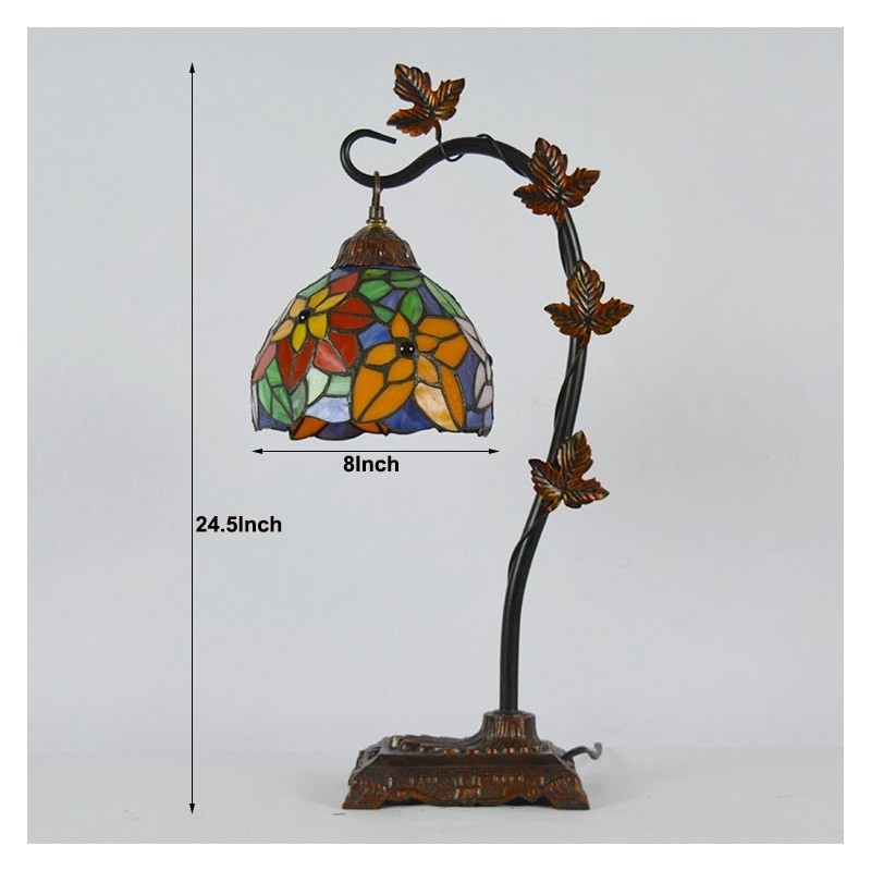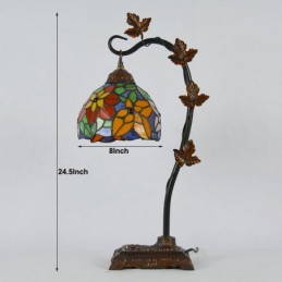 8 collu Tiffany stila vitrāžas galda lampa ar rokām darinātas galda lampas ar Morning Glory Vine metāla pamatni