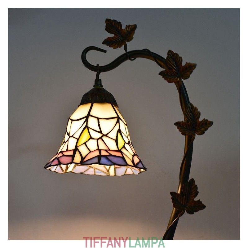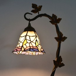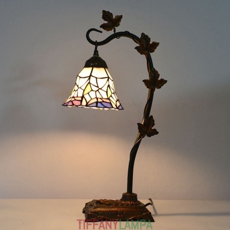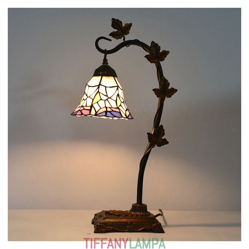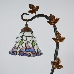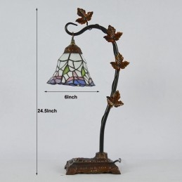 6 collu Tiffany stila vitrāžas galda lampa, ar rokām darināta dekora galda lampa ar Morning Glory Vine metāla pamatni
