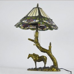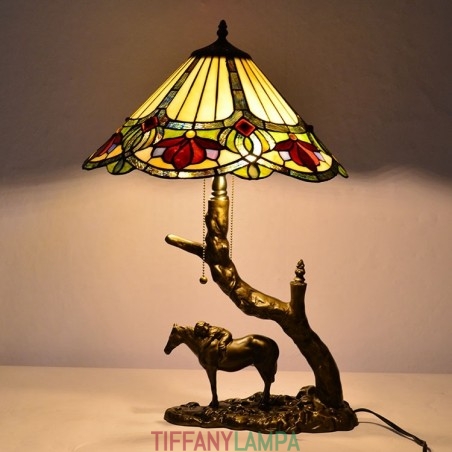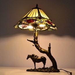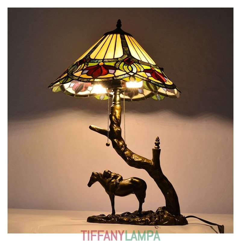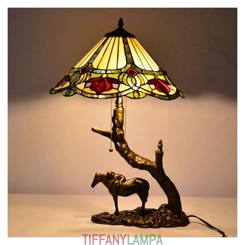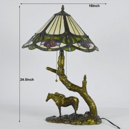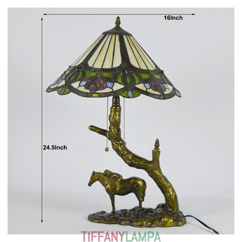 Elagent vitrāžas galda lampa Tiffany stila galda lampa ar 16 collu lampu ar zirga sveķu pamatni
