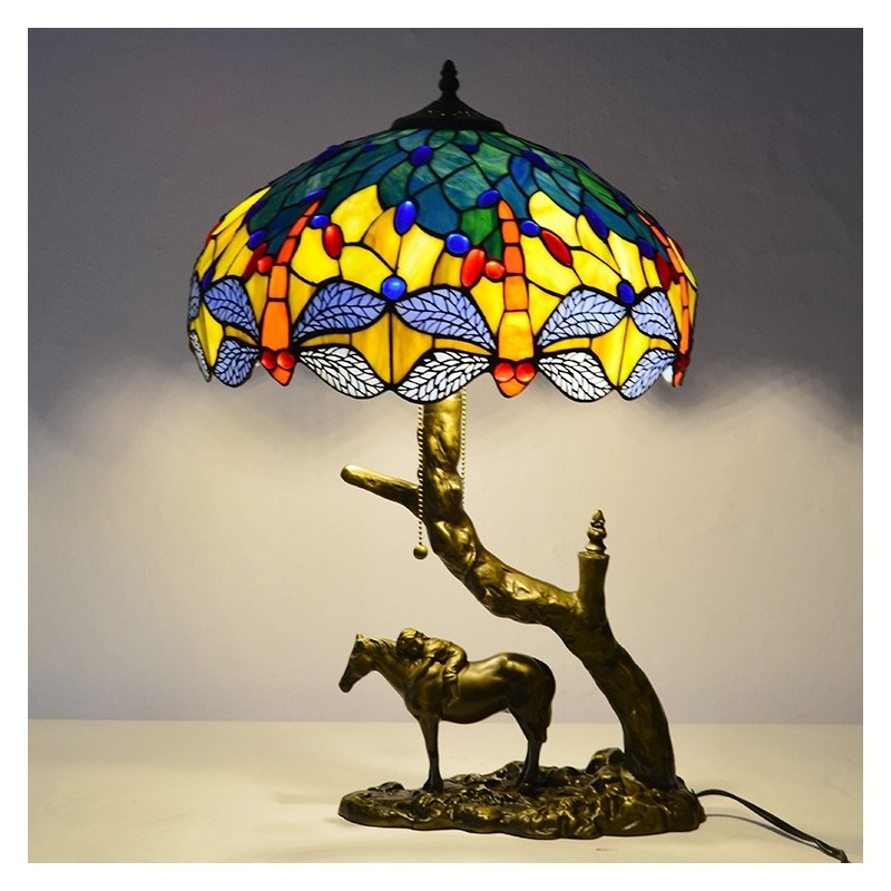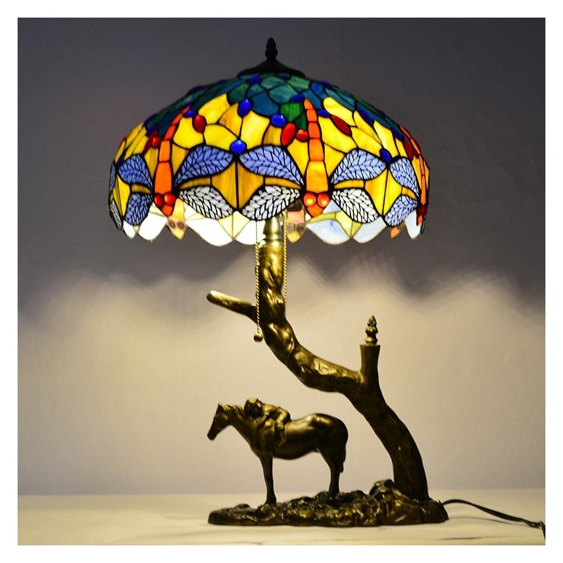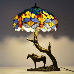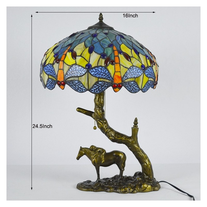 Vitrāžas galda lampa Tiffany stila galda gaisma 16 collu spāres lampa ar zirga sveķu pamatni