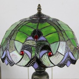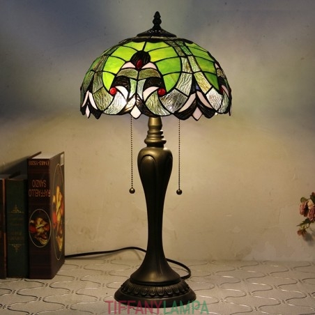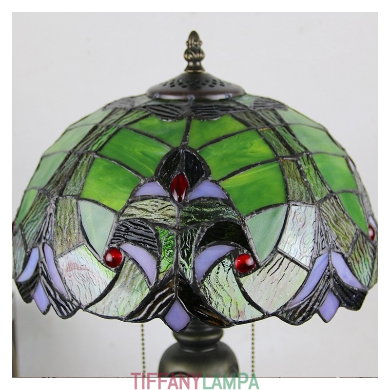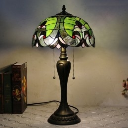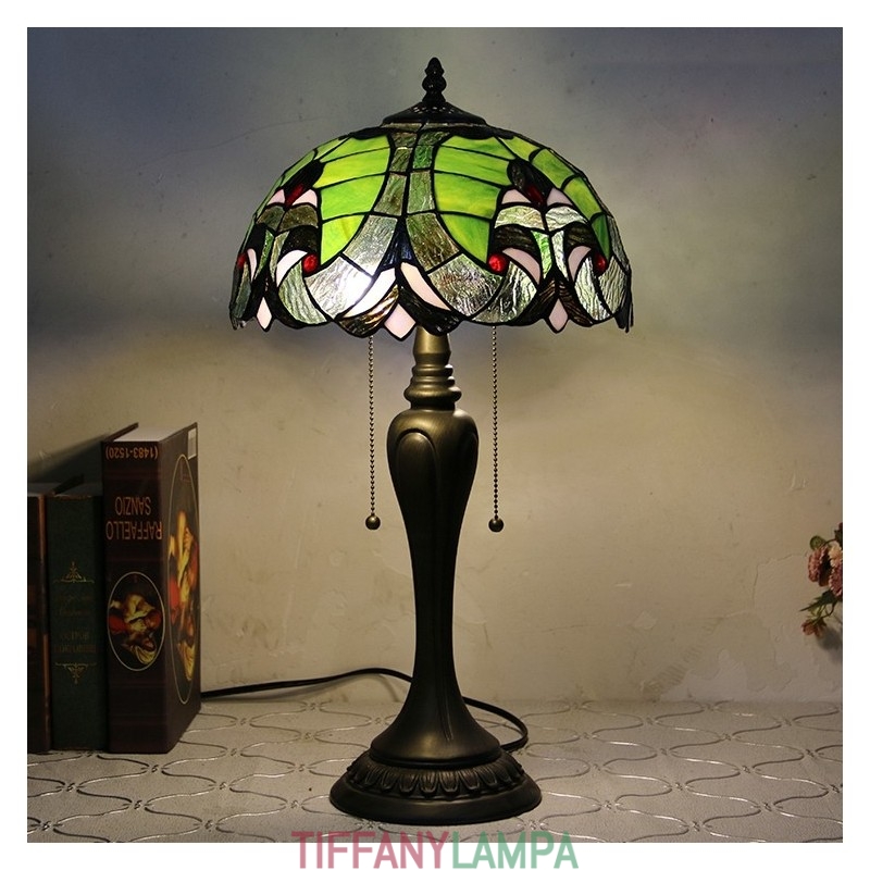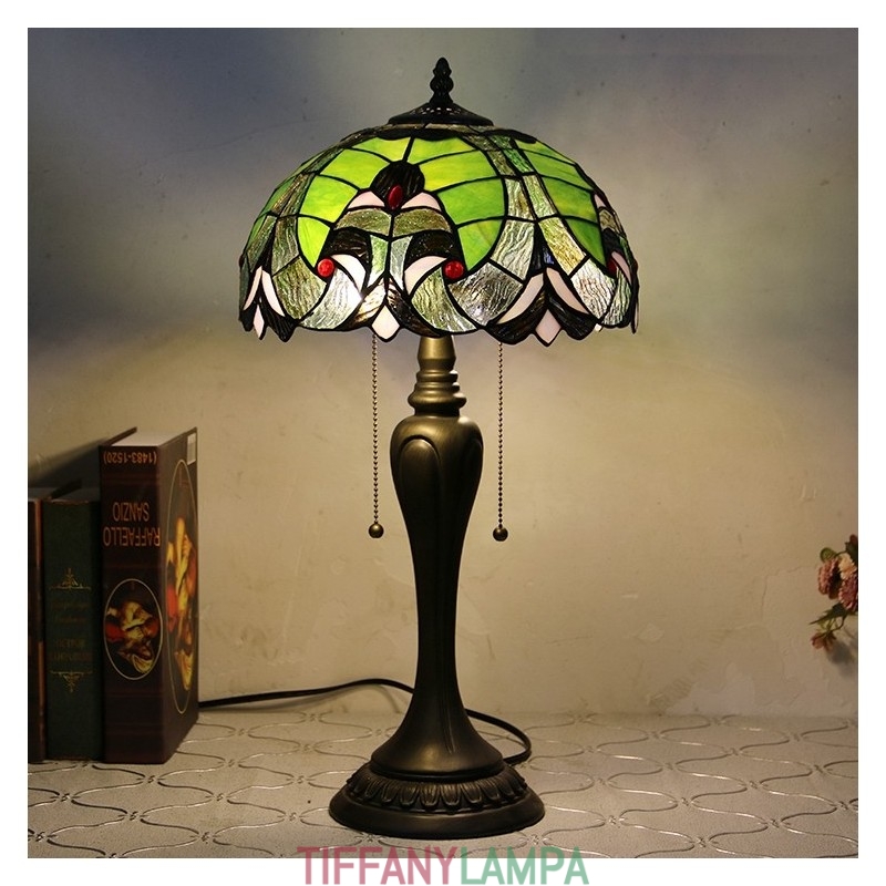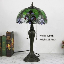 12 collu Tiffany stila galda lampa, zaļa, eleganta vitrāžas galda lampa, radoša guļamistabas nakts galda lampa