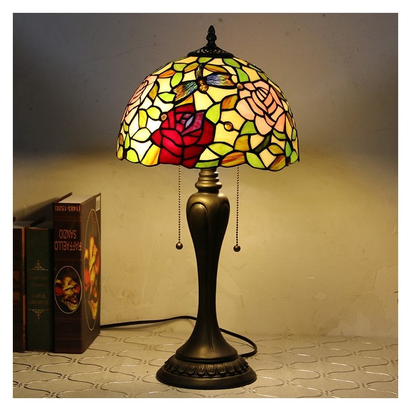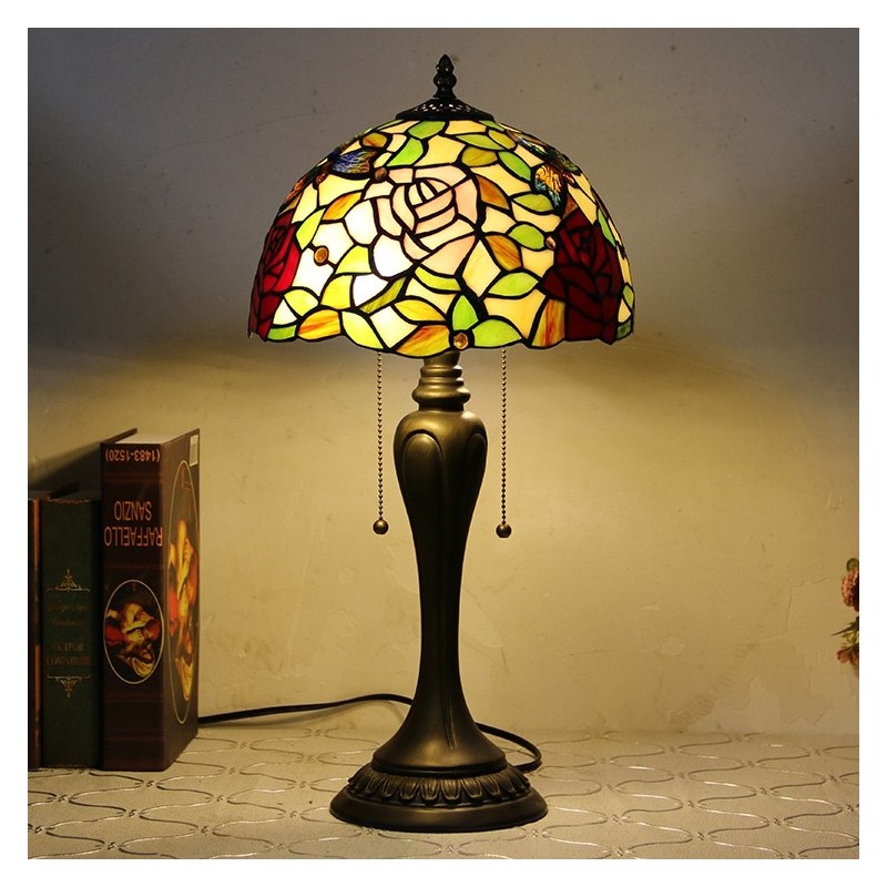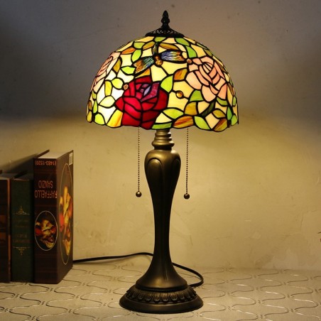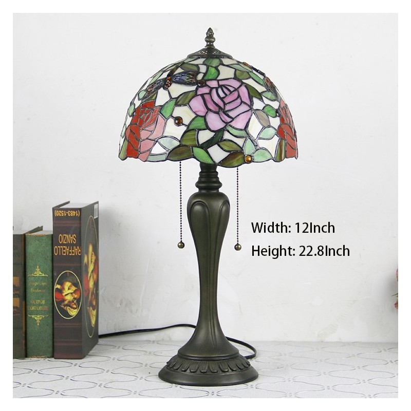 12 collu Tiffany stila galda lampa Eleganta ziedu vitrāžas galda lampa Radoša guļamistabas nakts galda lampa
