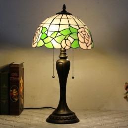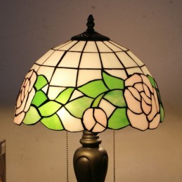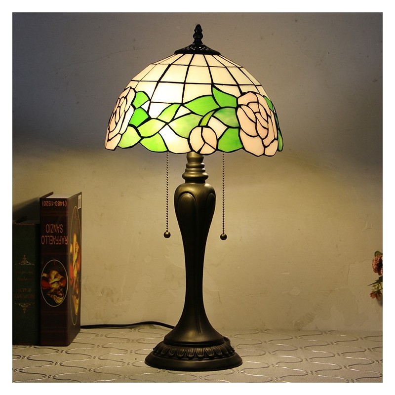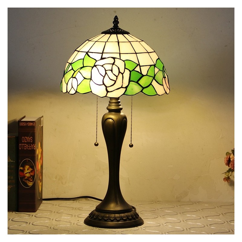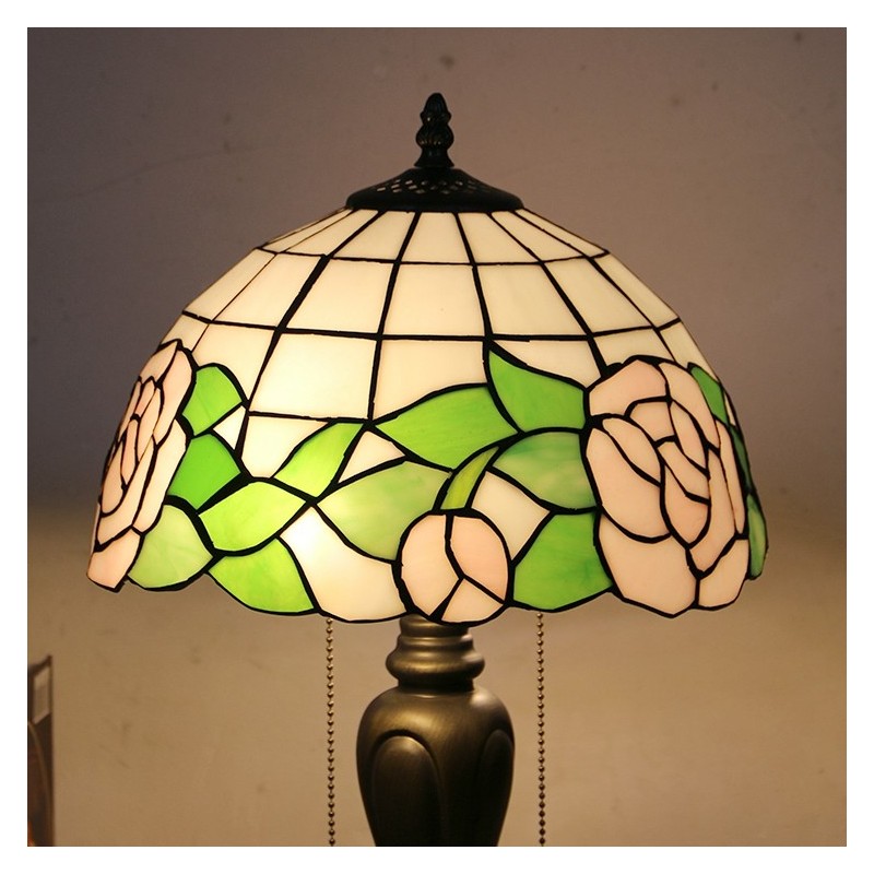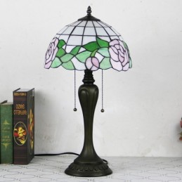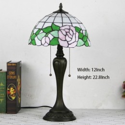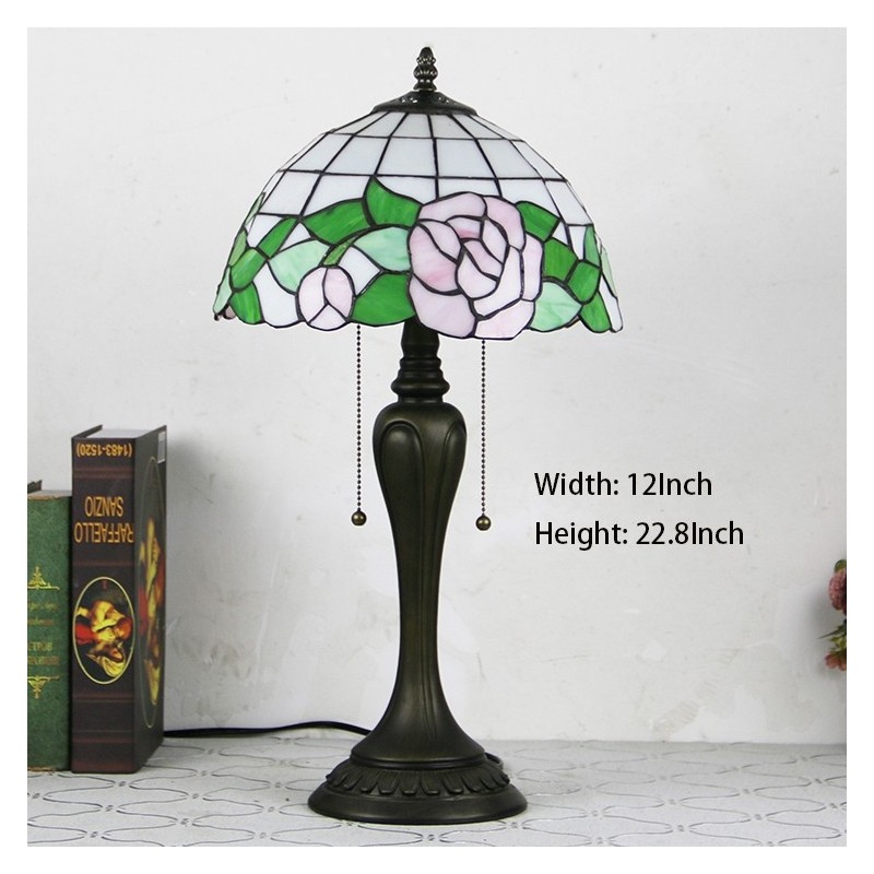 12 collu Tiffany stila galda lampa, rozā ziedu vitrāžas galda lampa, radoša guļamistabas nakts galda lampa