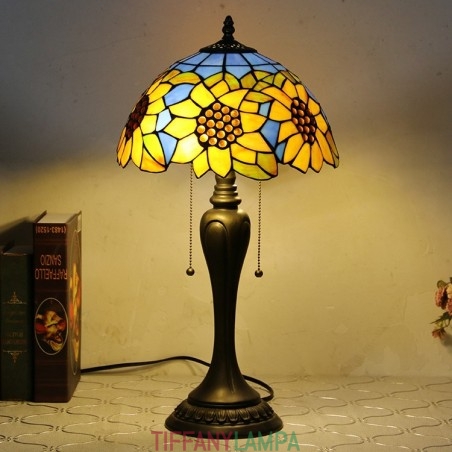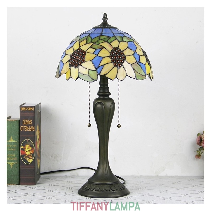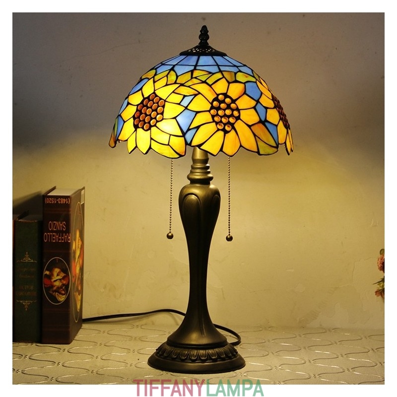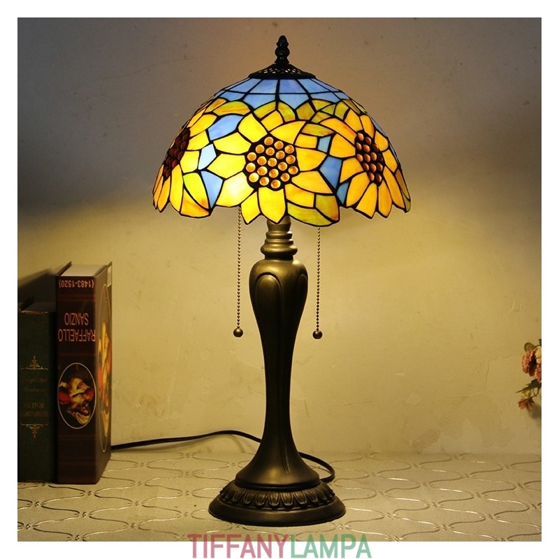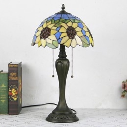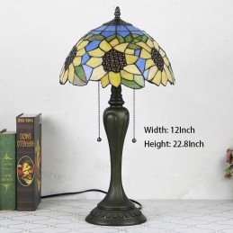 12 collu Tiffany stila galda lampa, zila saulespuķu vitrāžas galda lampa, radoša guļamistabas nakts galda lampa