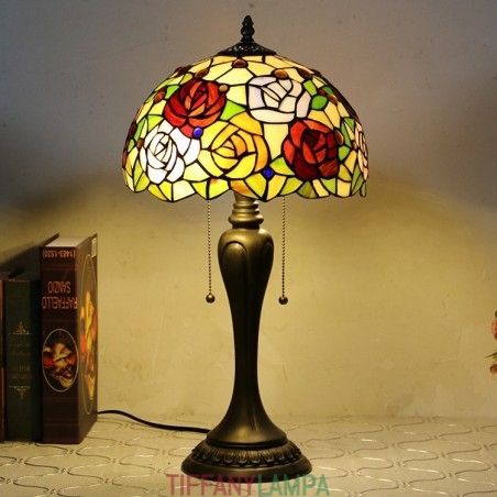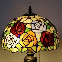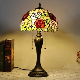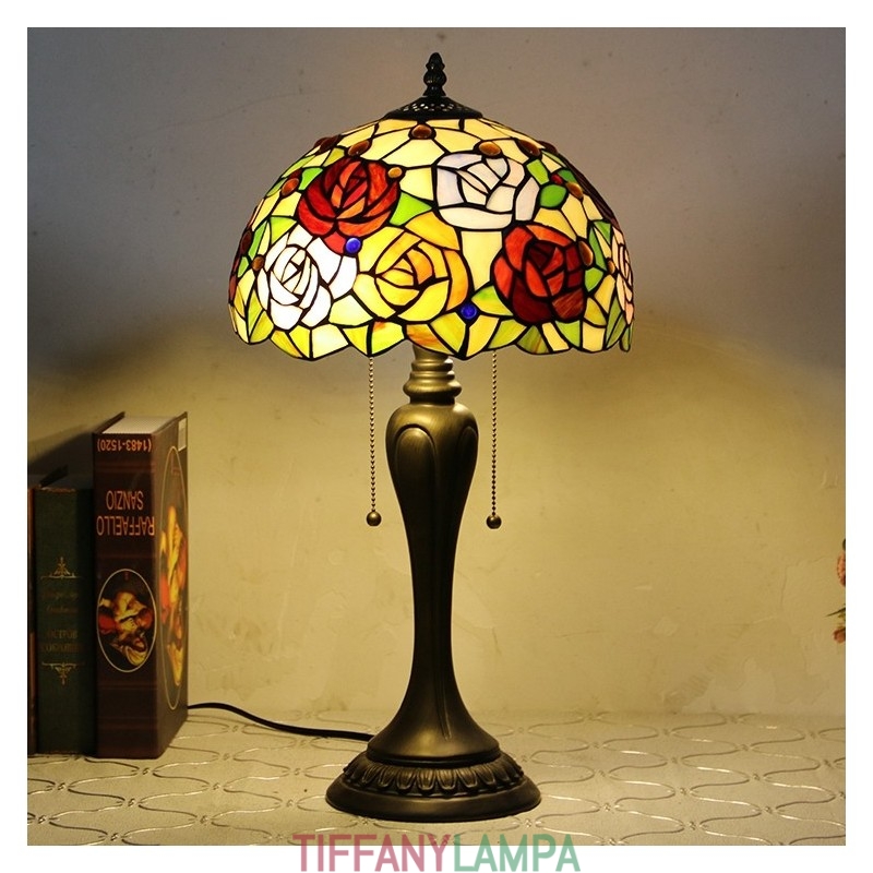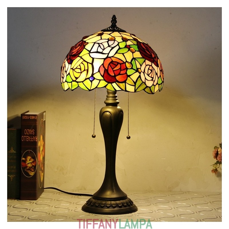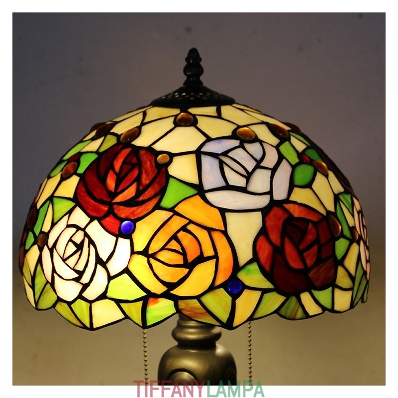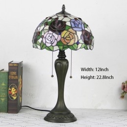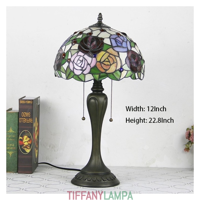 12 collu Tiffany stila galda lampa, roze, ziedu vitrāžas galda lampa, radoša guļamistabas nakts galda lampa
