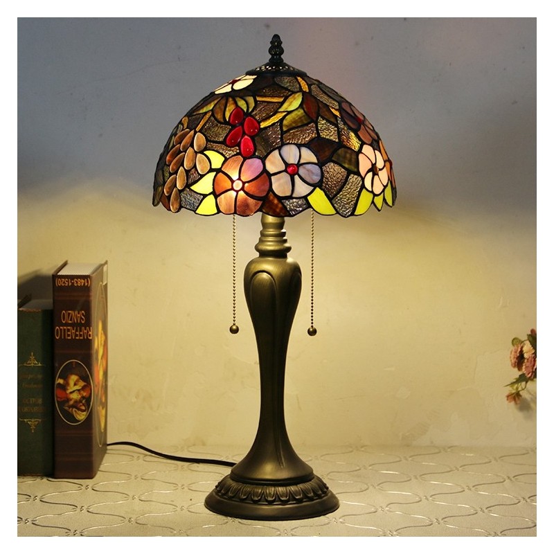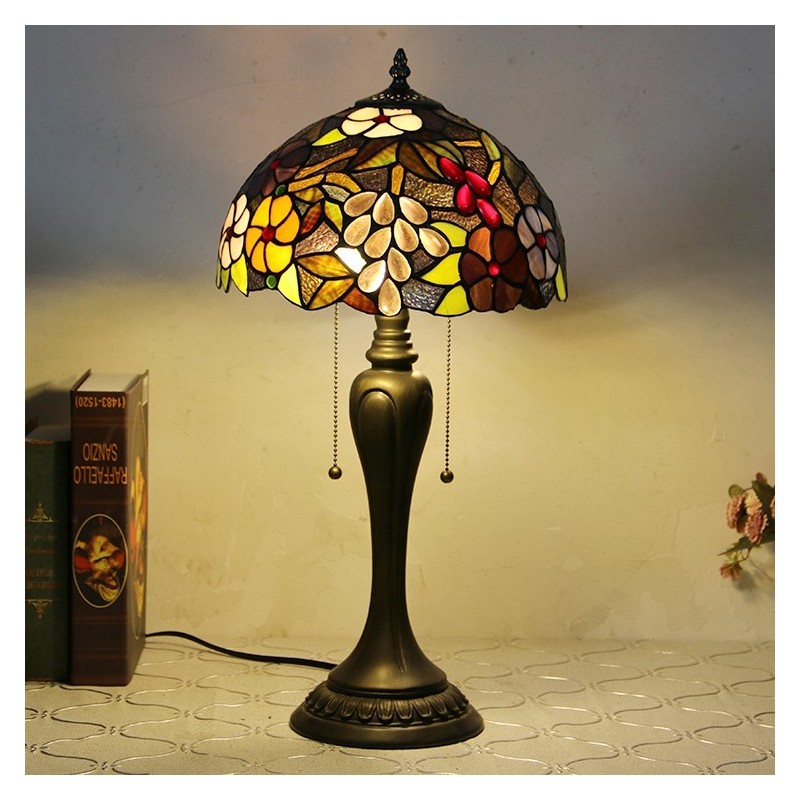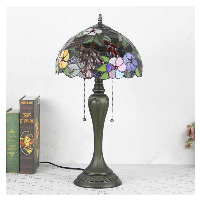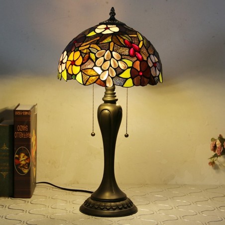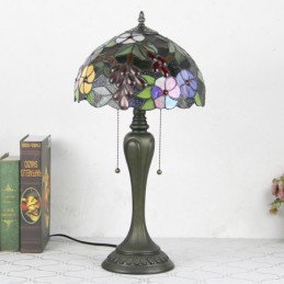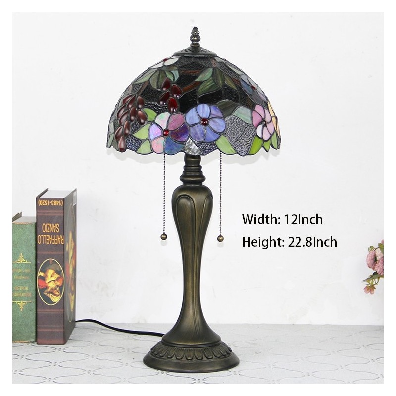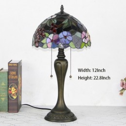12 collu Tiffany stila galda lampa Vīnogu vitrāžas galda lampa Radoša guļamistabas nakts galda lampa