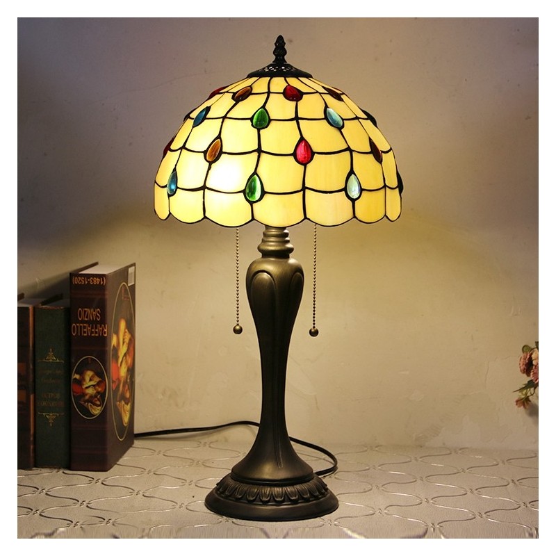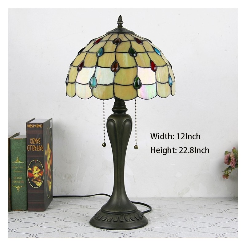12 collu Tiffany stila galda lampa Krāsaina vitrāžas galda lampa Radoša guļamistabas nakts galda lampa