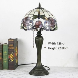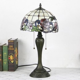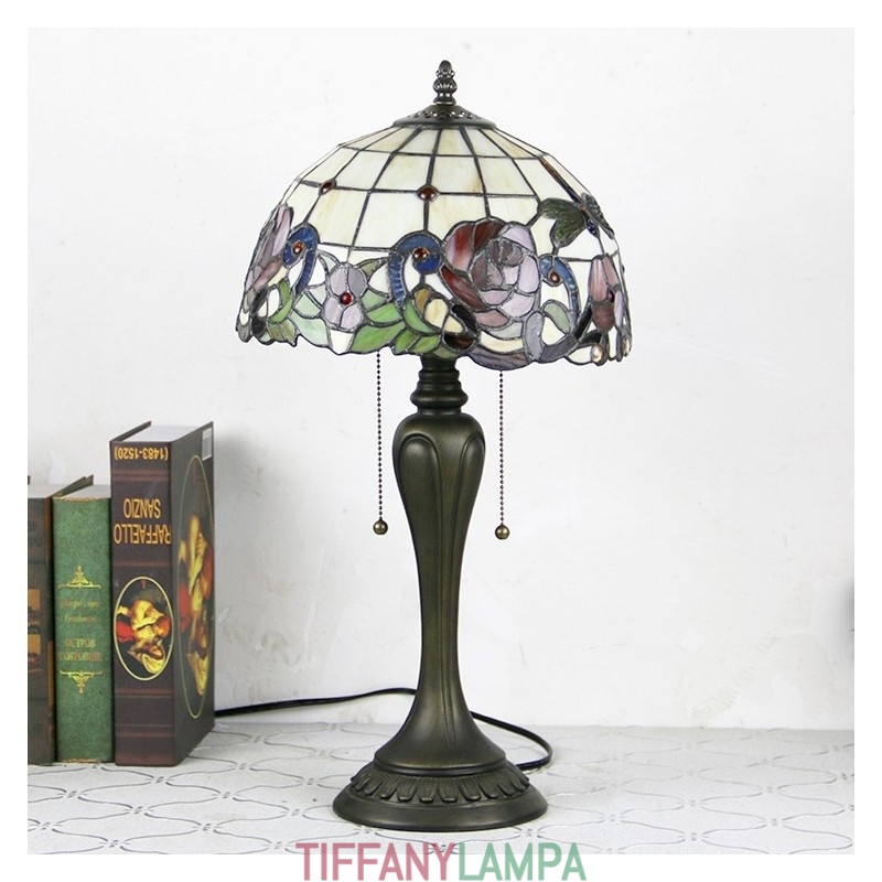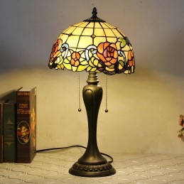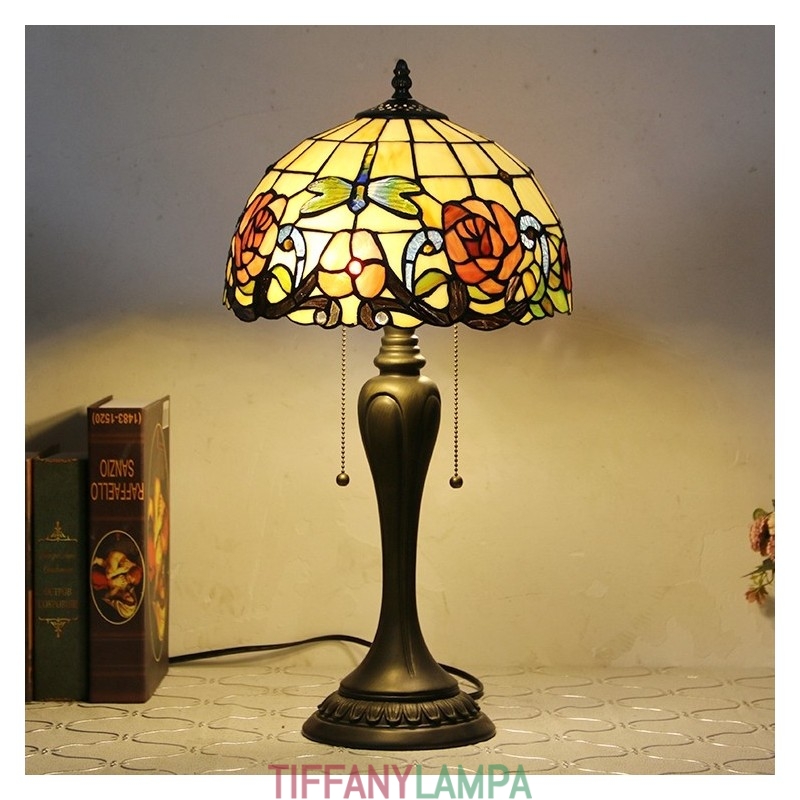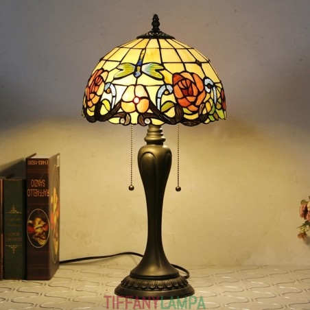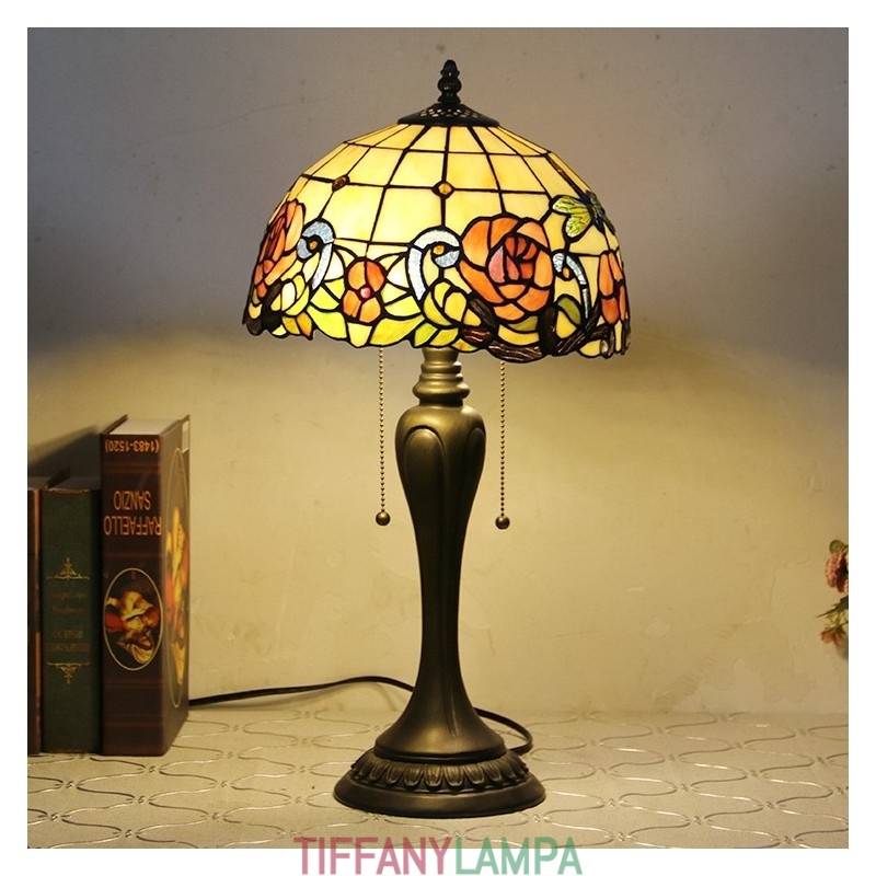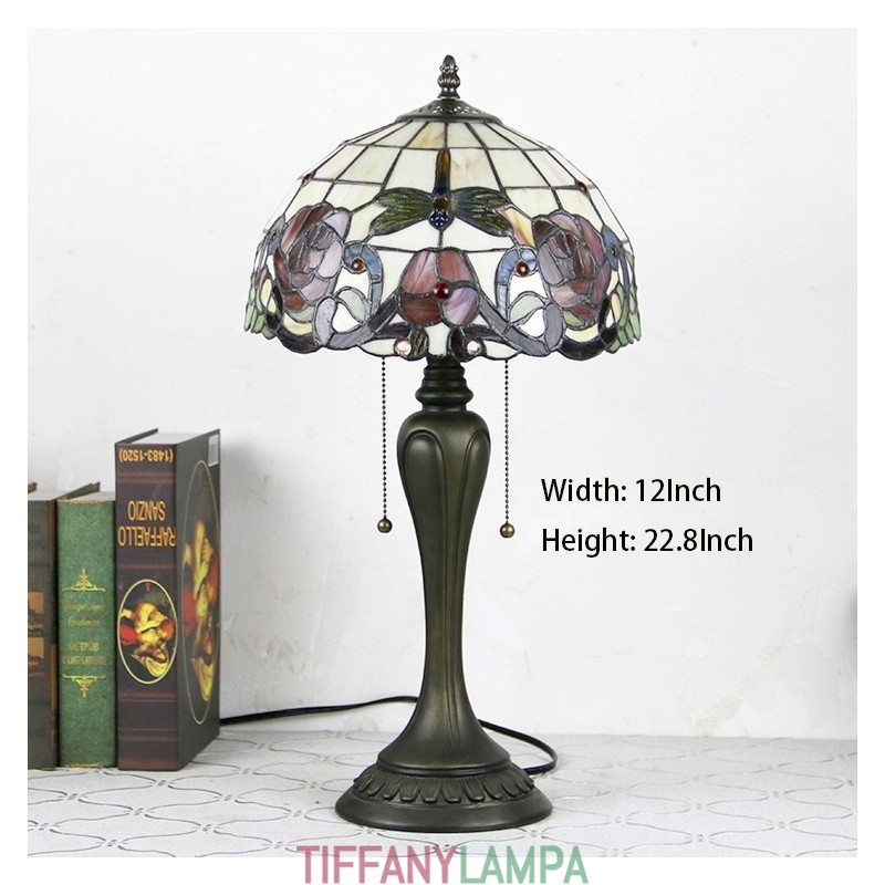 12 collu Tiffany stila galda lampa sarkanās rozes vitrāžas galda lampa, radoša guļamistabas nakts galda lampa