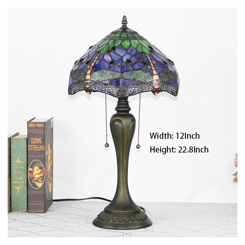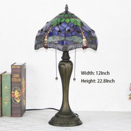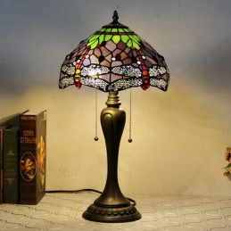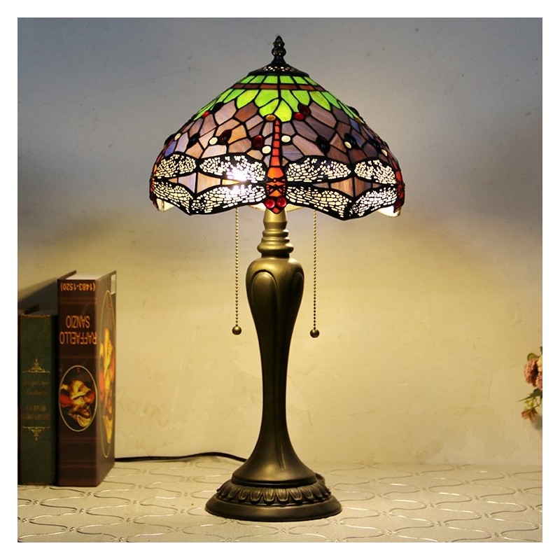 12 In Tiffany stila galda lampa purpursarkana spāres vitrāžas galda lampa. Radoša guļamistabas nakts galda lampa