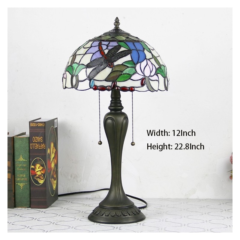 12 collu Tiffany stila galda lampa spāres, vitrāžas stikla galda lampa, radoša guļamistabas nakts galda lampa