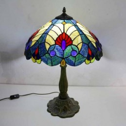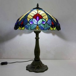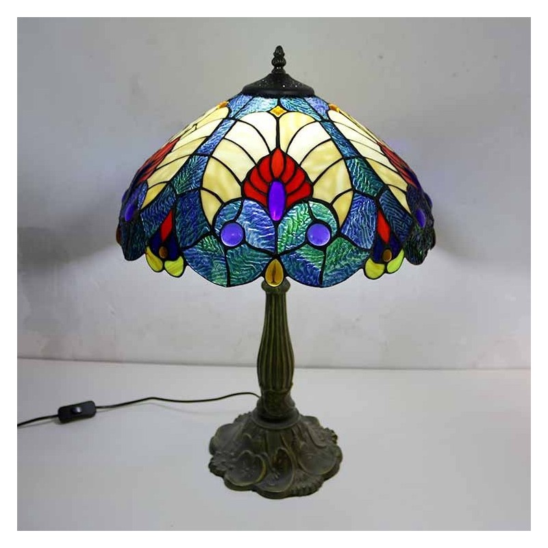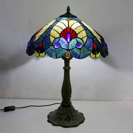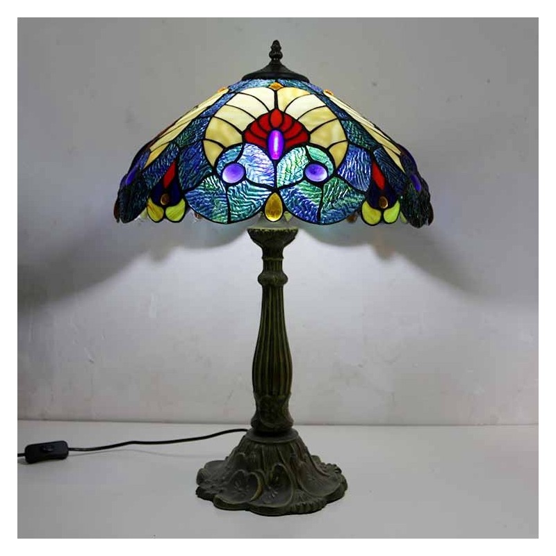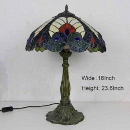Karaliskā zilā vitrāžas galda lampa Tiffany stila galda lampa ar 16 collu platu lampu un cinka sakausējuma pamatni