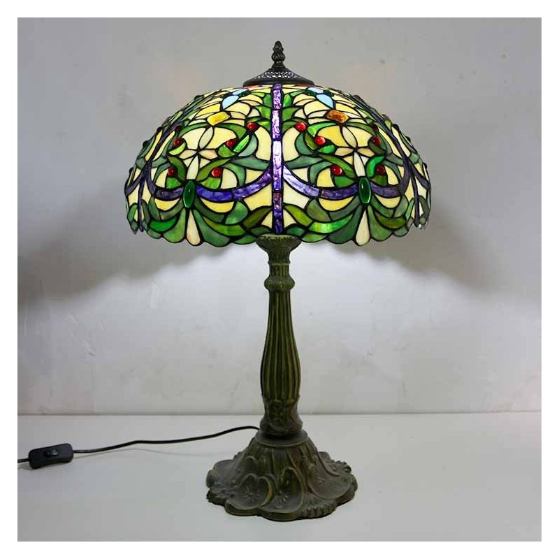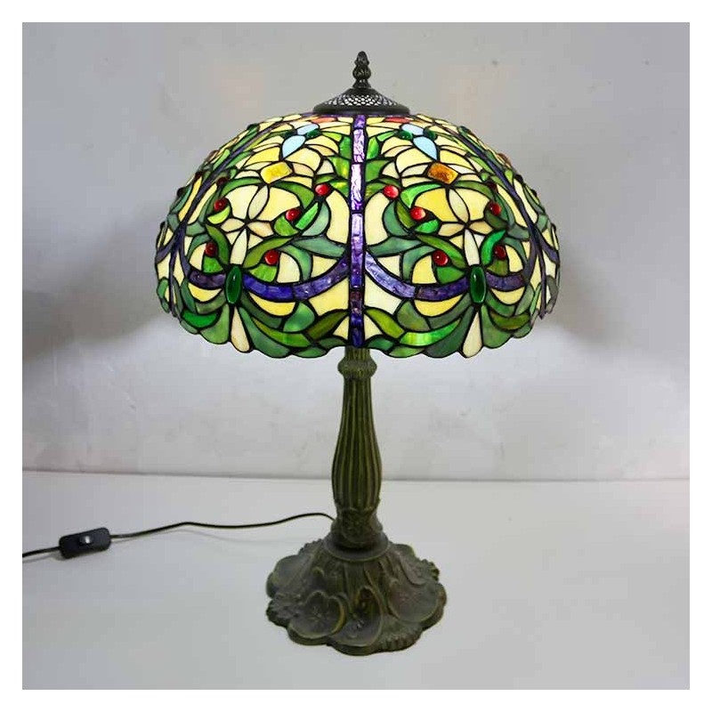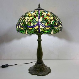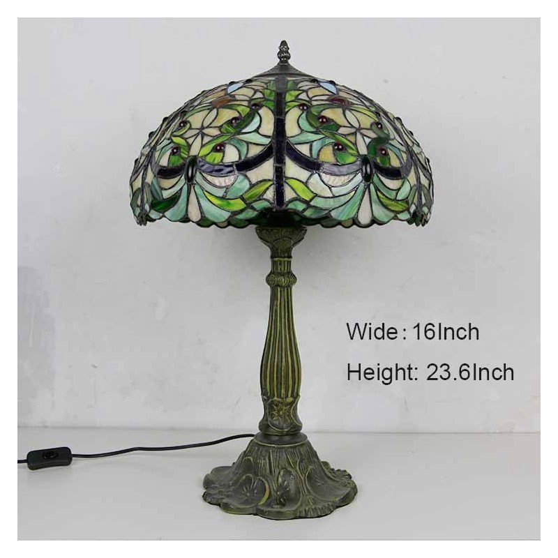 Viktorijas laikmeta vitrāžas galda lampa Tiffany stila galda lampa ar 16 collu platu lampu un cinka sakausējuma pamatni