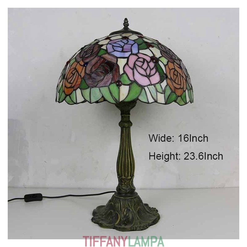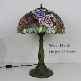 Eiropas vitrāžas galda lampa Tiffany stila galda lampa ar 16 collu platu lampu un cinka sakausējuma pamatni
