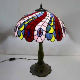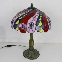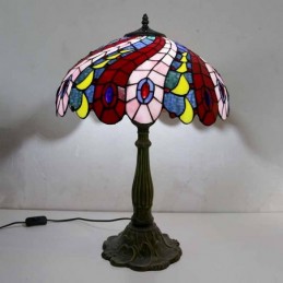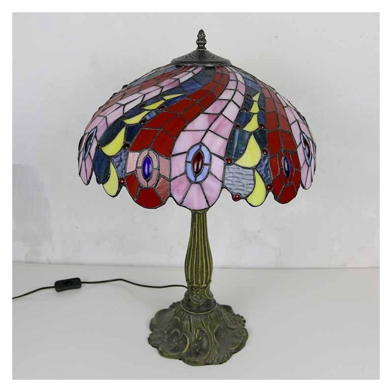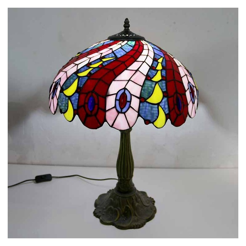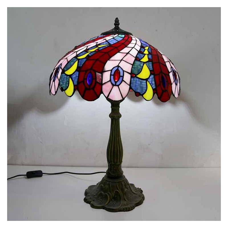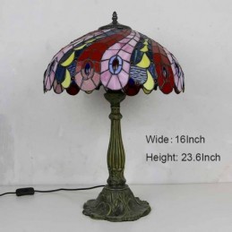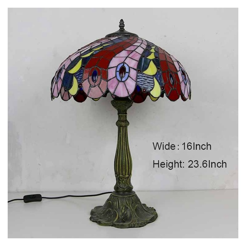 Pāvs vitrāžas galda lampa Tiffany stila galda lampa ar 16 collu platu lampu un cinka sakausējuma pamatni