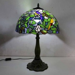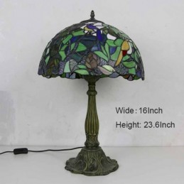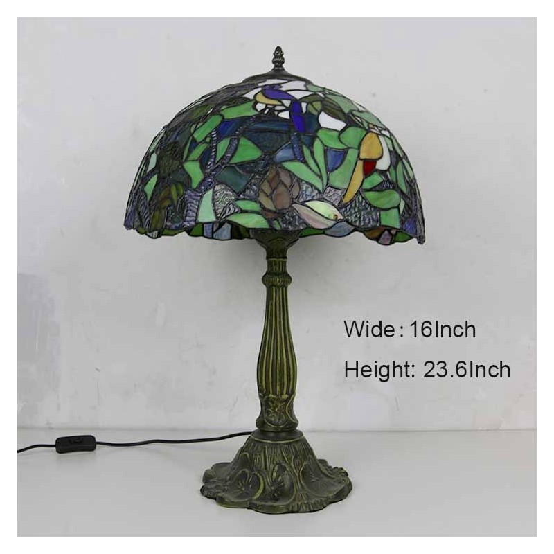 Unikāla vitrāžu galda lampa Tiffany stila galda lampa ar 16 collu platu lampu un cinka sakausējuma pamatni