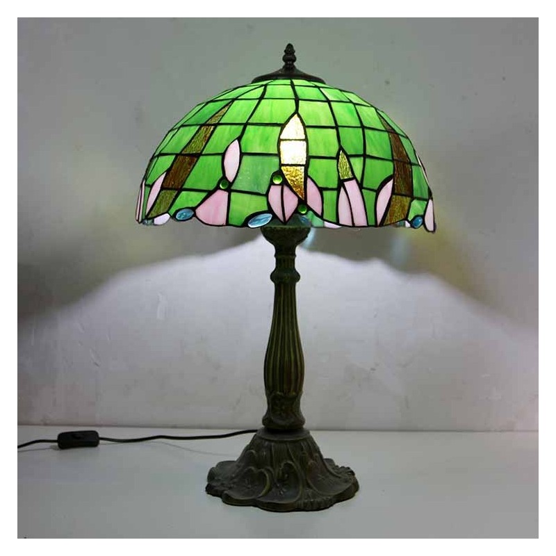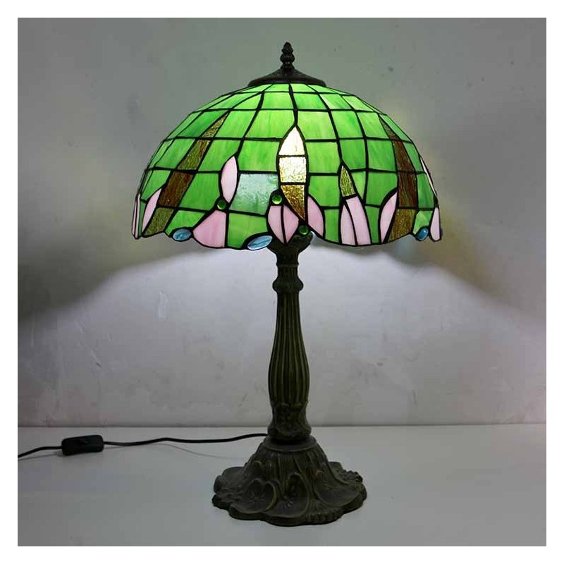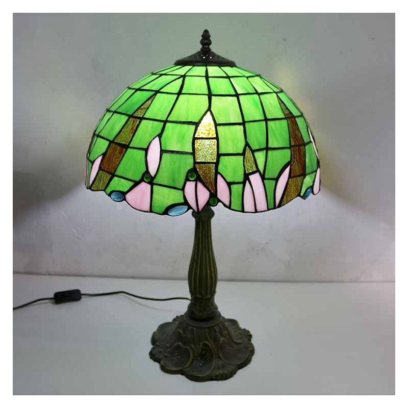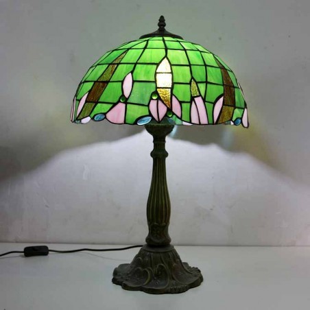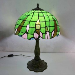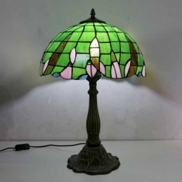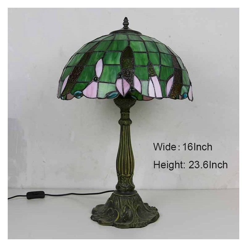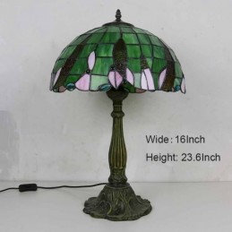 Zaļas vitrāžas galda lampa Tiffany stila galda lampa ar 16 collu platu lampu un cinka sakausējuma pamatni