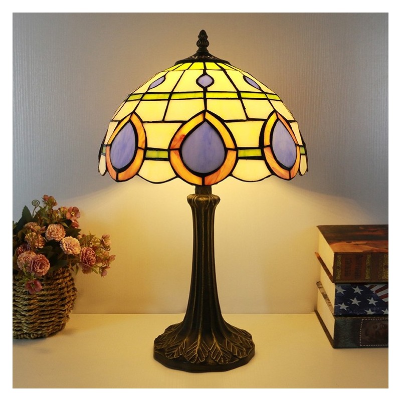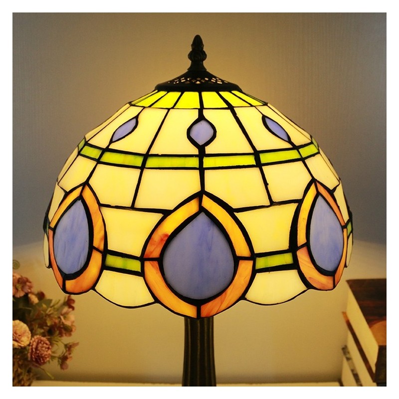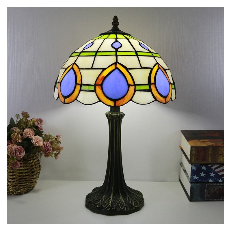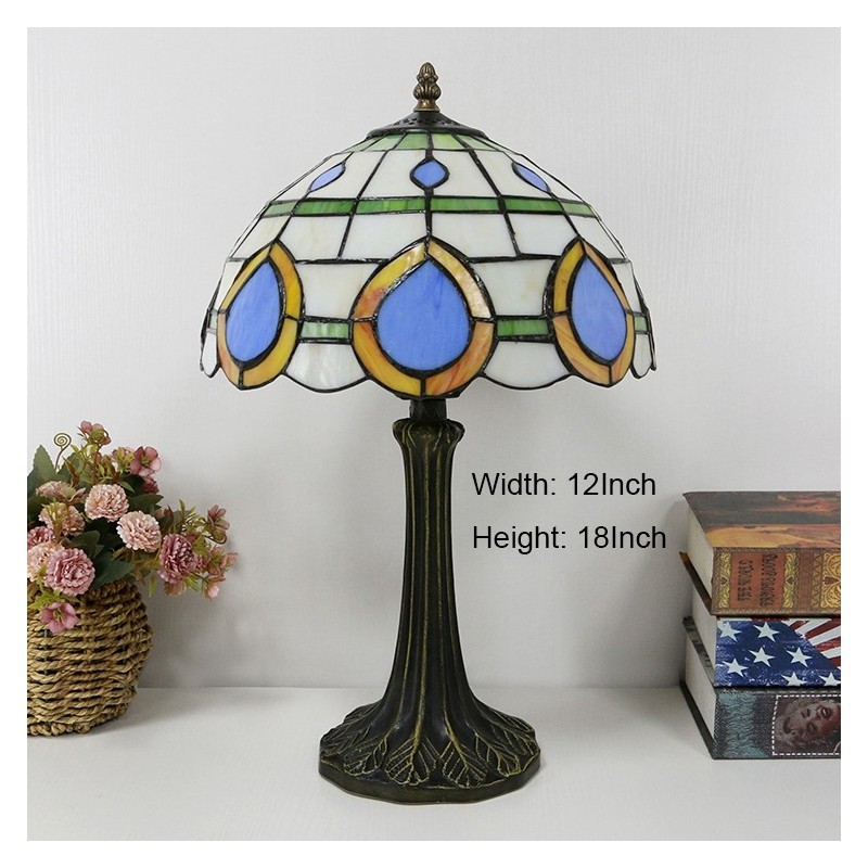 Tiffany stila galda lampa 12 collu vintage pāva vitrāžas lampas rakstāmgalds, gaiša radošā māksla mājas dekors