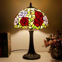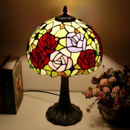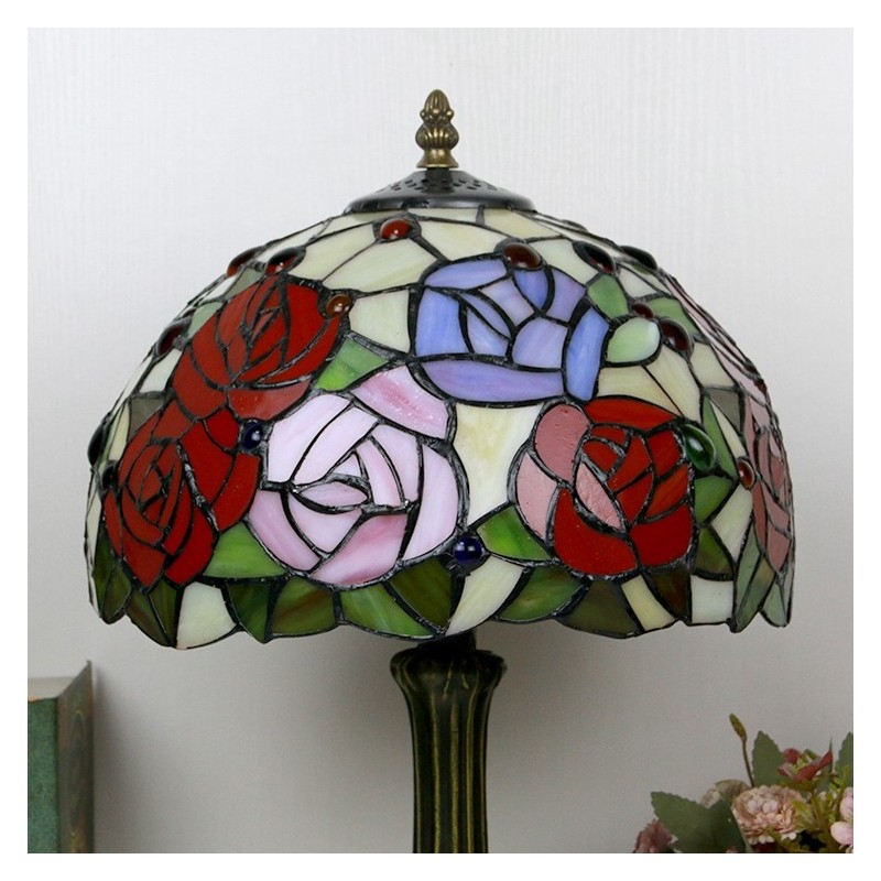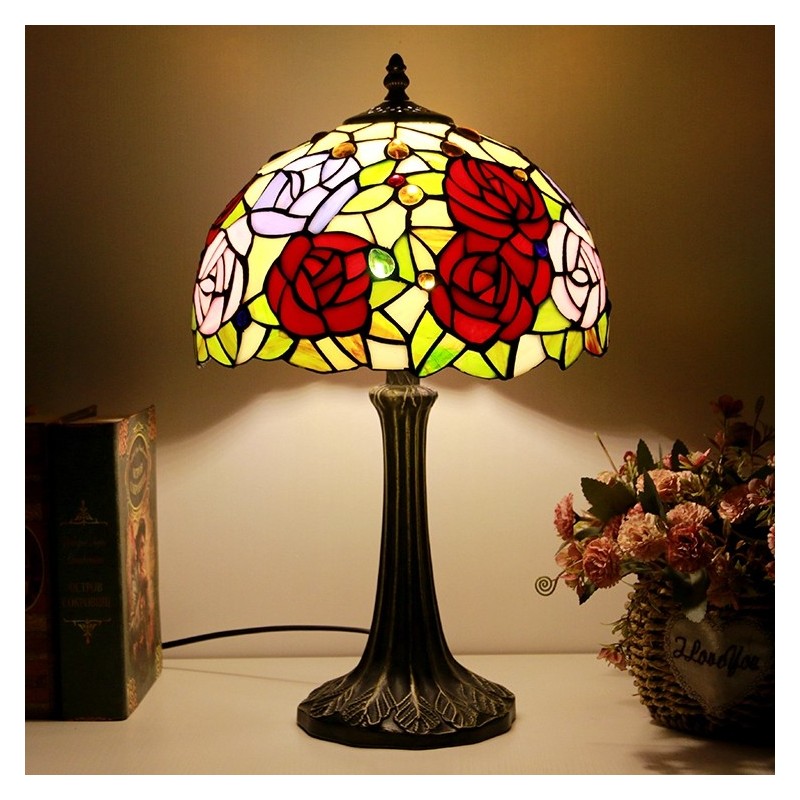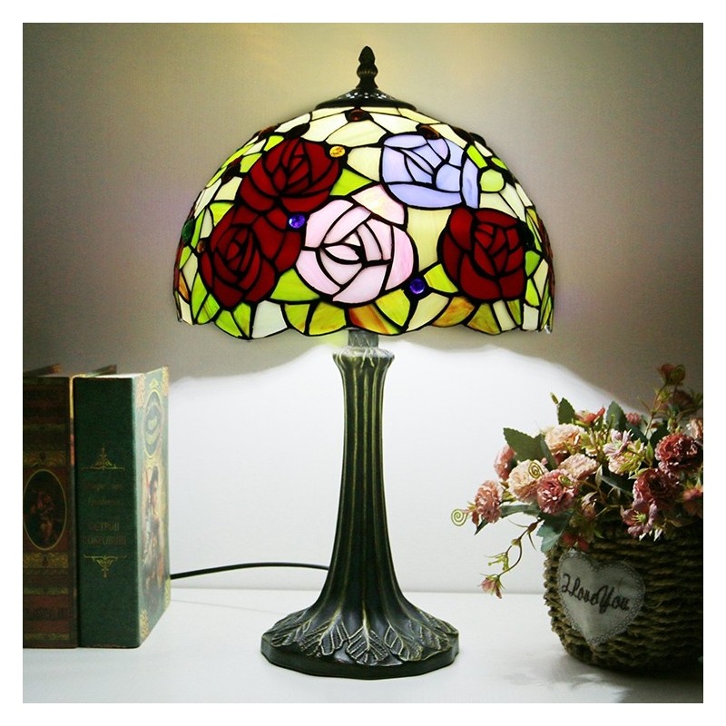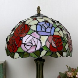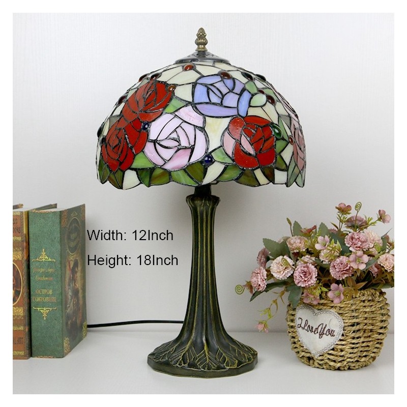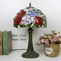 Tiffany stila galda lampa 12 collu rožu ziedu vitrāžas lampas rakstāmgalds, gaišs radošās mākslas mājas dekors