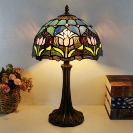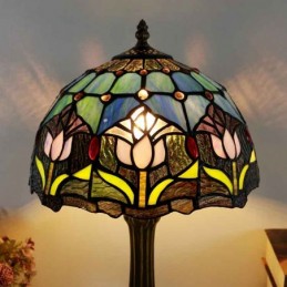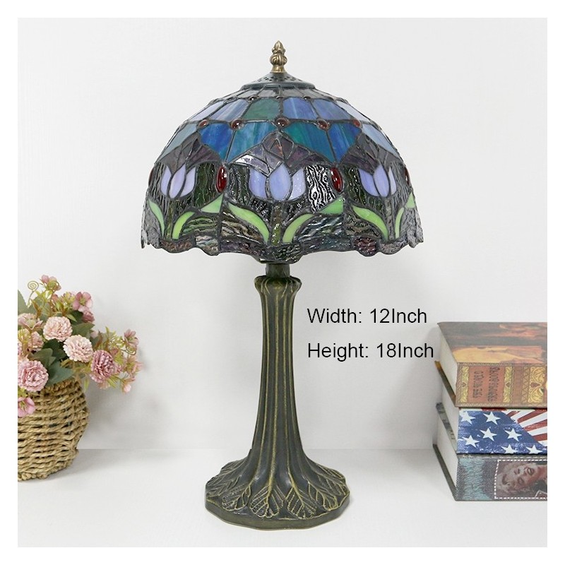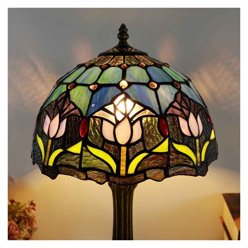 Tiffany stila galda lampa 12 collu tulpju ziedu vitrāžas lampas rakstāmgalds, gaiša radošā māksla mājas dekors