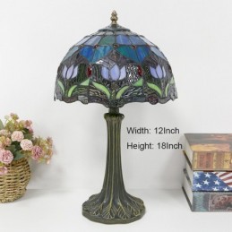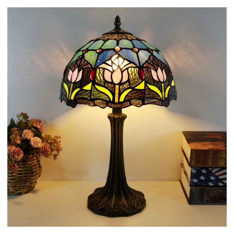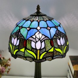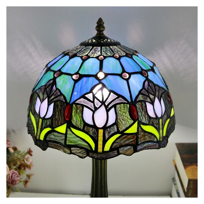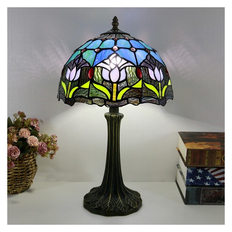 Tiffany stila galda lampa 12 collu tulpju ziedu vitrāžas lampas rakstāmgalds, gaiša radošā māksla mājas dekors