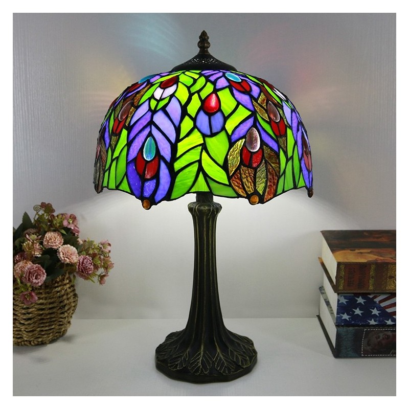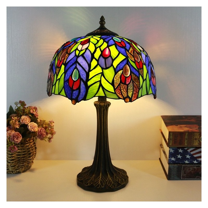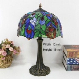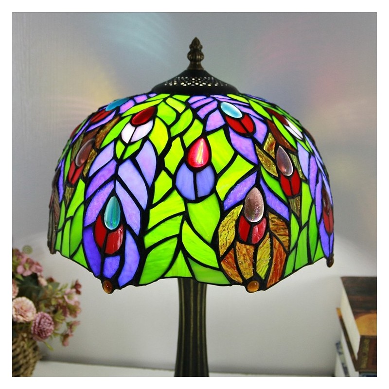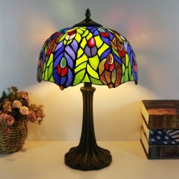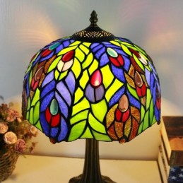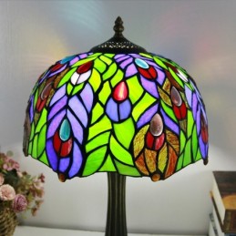 Tiffany stila galda lampa 12 collu unikāls pāvs vitrāžas lampas rakstāmgalds gaismas radošās mākslas mājas dekors