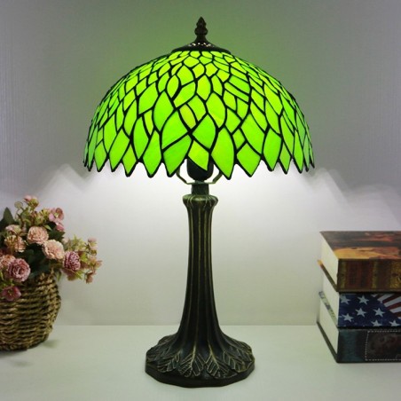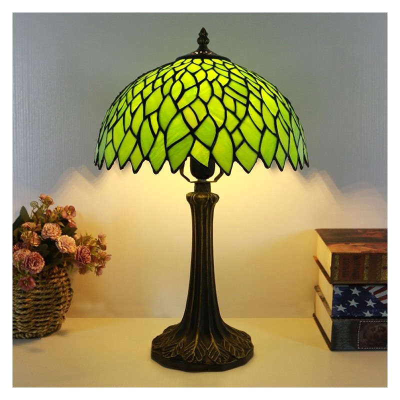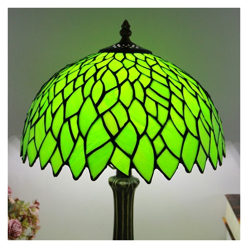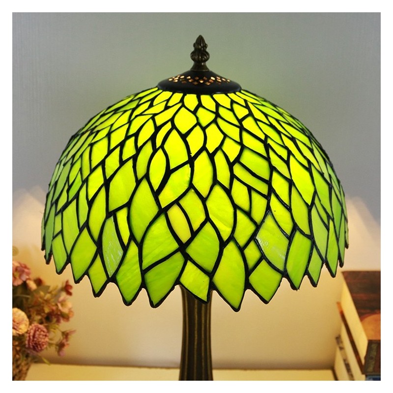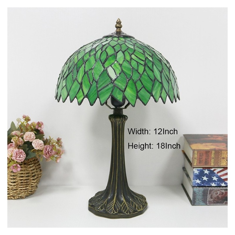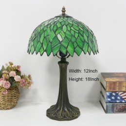 Tiffany stila galda lampa 12 collu zaļas lapas vitrāžas lampas rakstāmgalds gaismas radošās mākslas mājas dekors