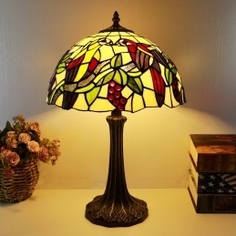 Tiffany stila dzeltena galda lampa 12 collu vitrāžas putnu lampas rakstāmgalds gaismas radošās mākslas mājas dekors