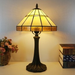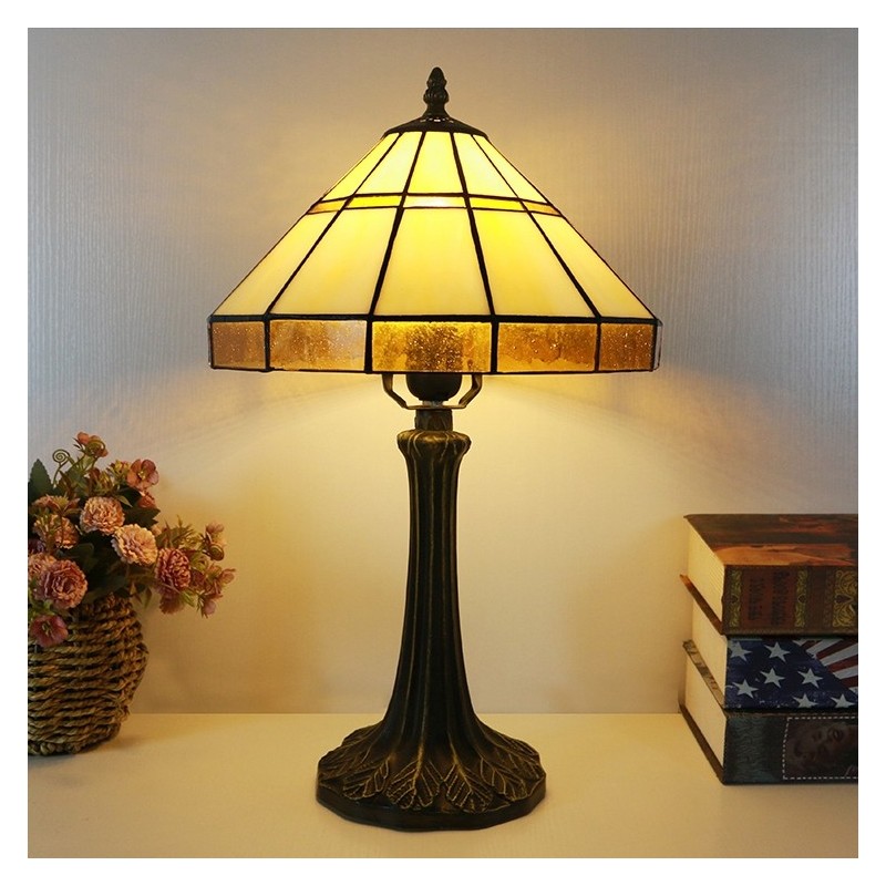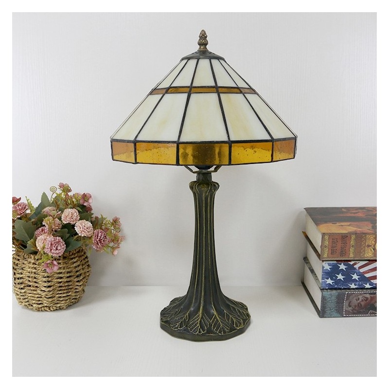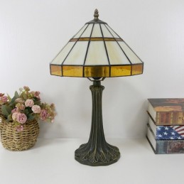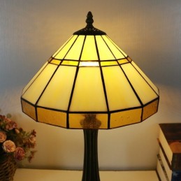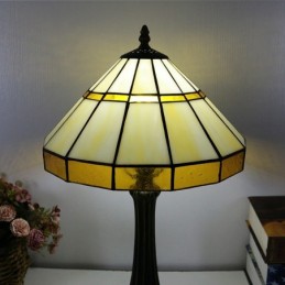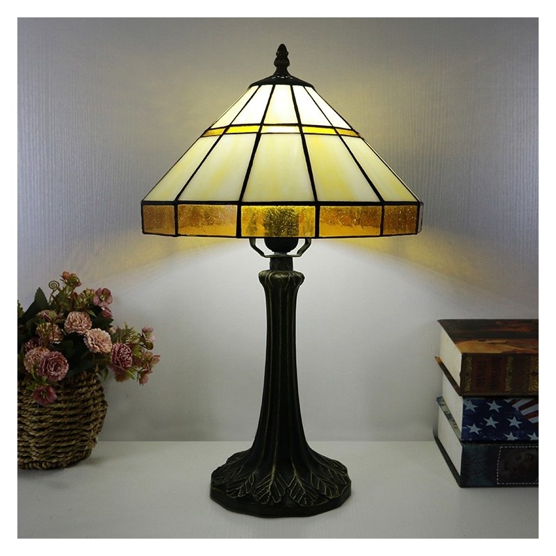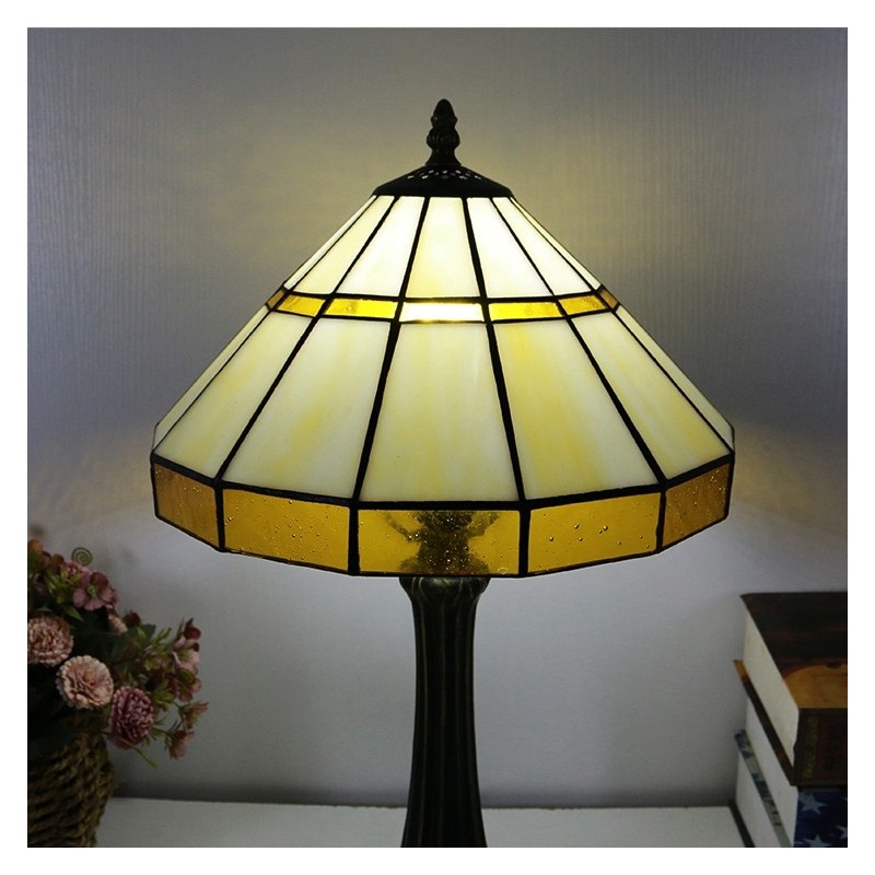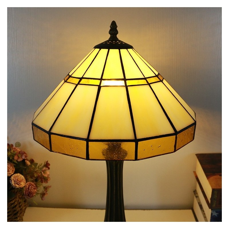Tiffany stila dzeltena galda lampa 12 collu vitrāžas lampas rakstāmgalds, gaišs radošās mākslas mājas dekors