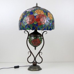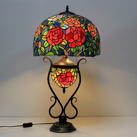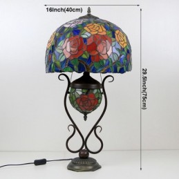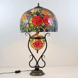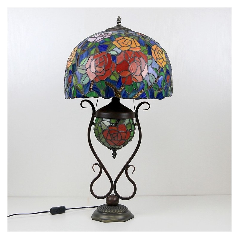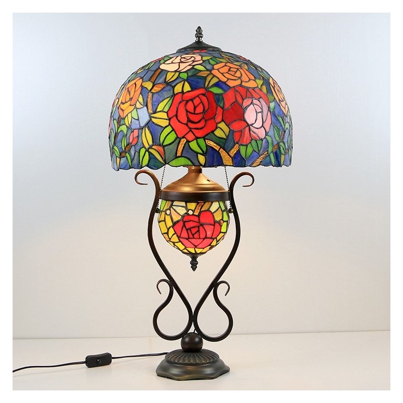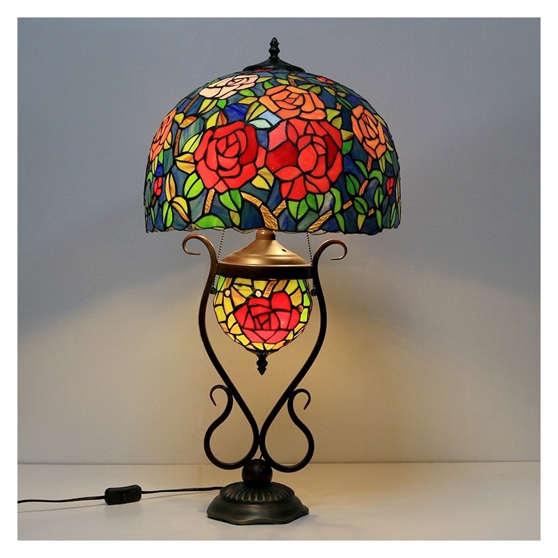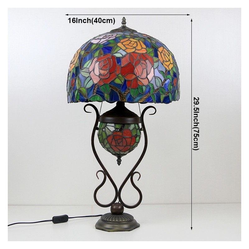 16 collu Es Vintage Rose Tiffany stila vitrāžas galda lampa ar divvietīgu apgaismojumu guļamistabai pie gultas mākslas