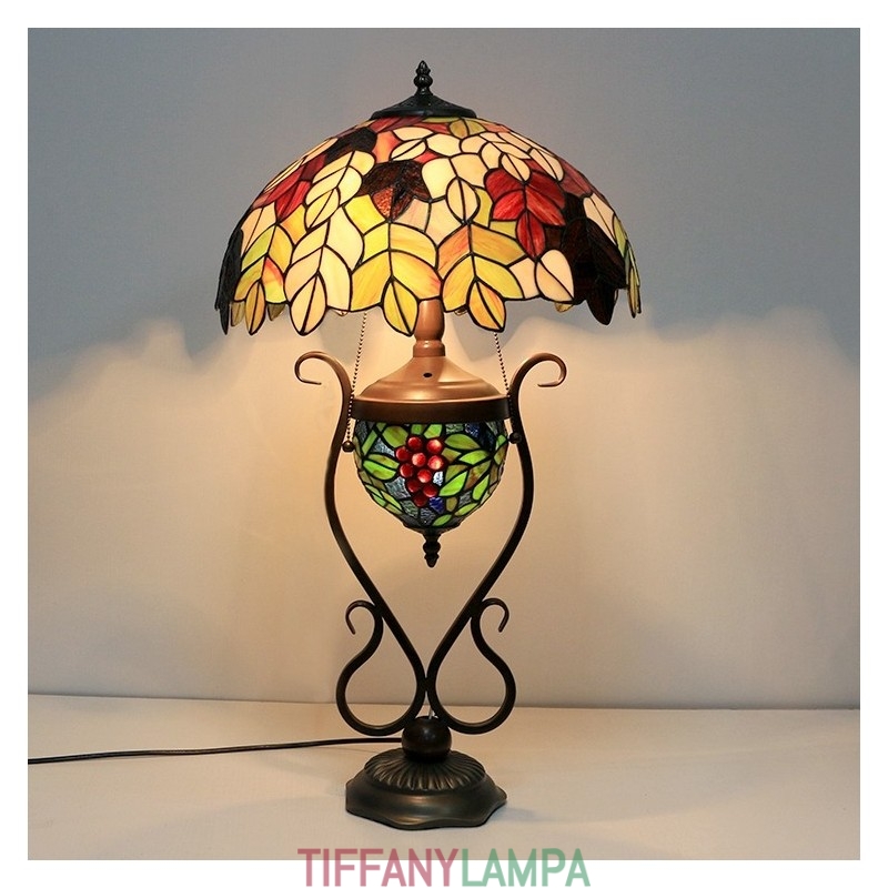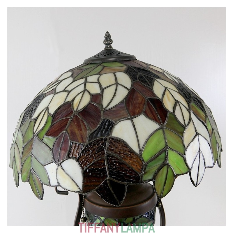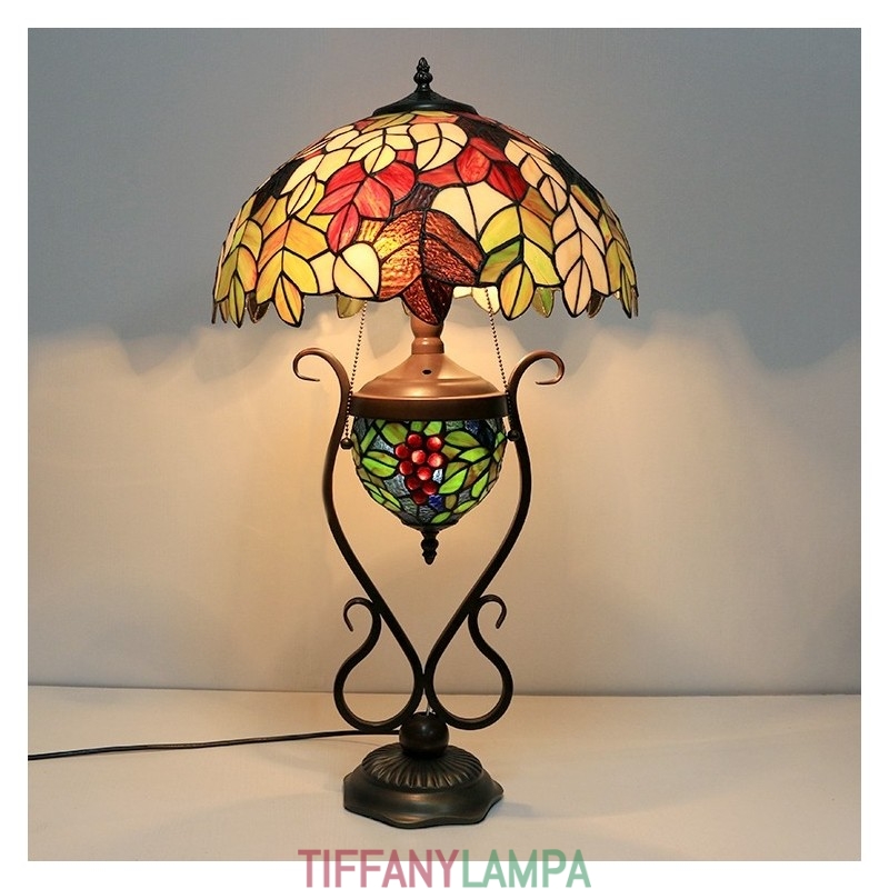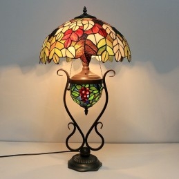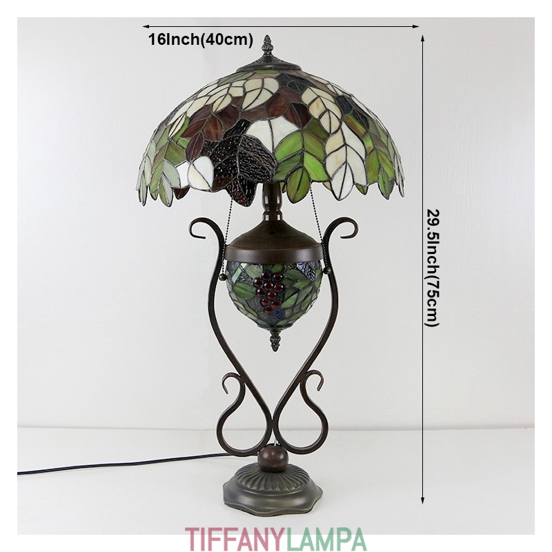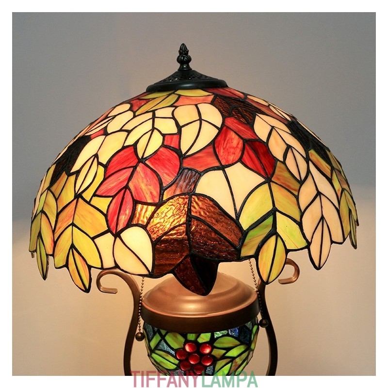 16 collu Es vintage lapu Tiffany stila vitrāžas galda lampa ar dubultu apgaismojumu guļamistabai pie gultas mākslas