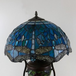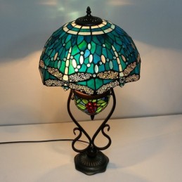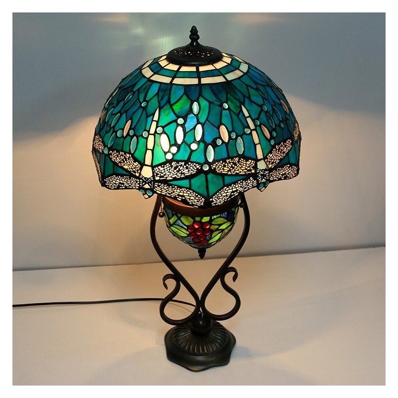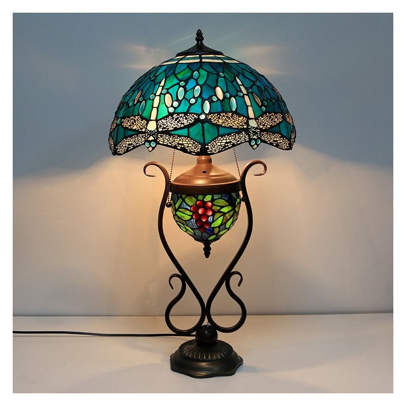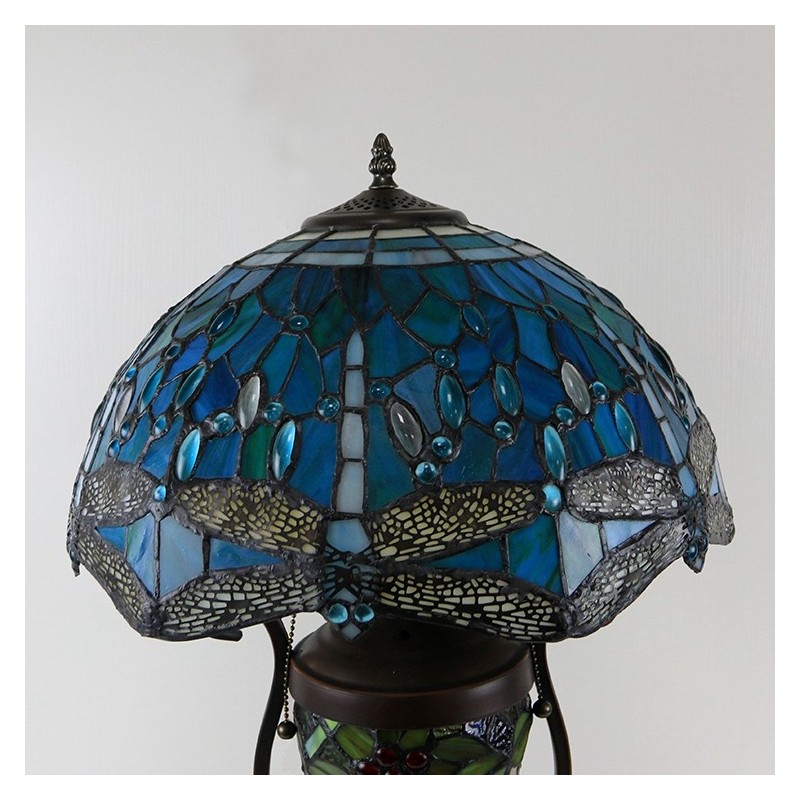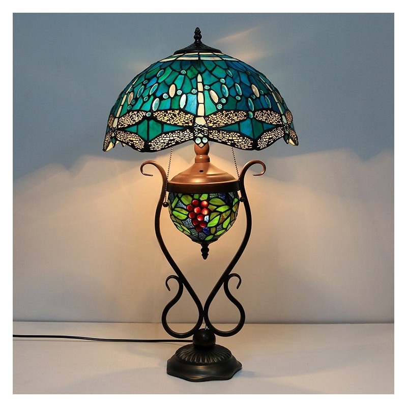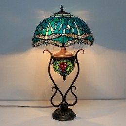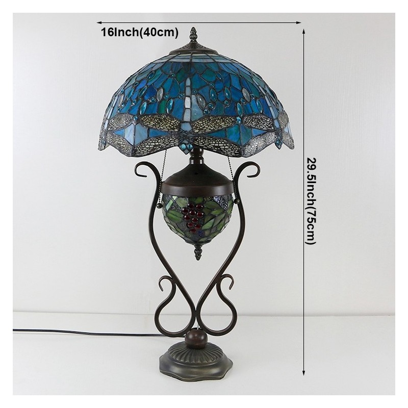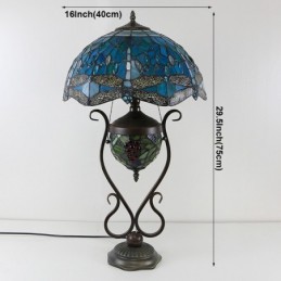 16 collu zila spāre Tiffany stila vitrāžas galda lampa ar dubultu apgaismojumu guļamistabai pie gultas mākslas