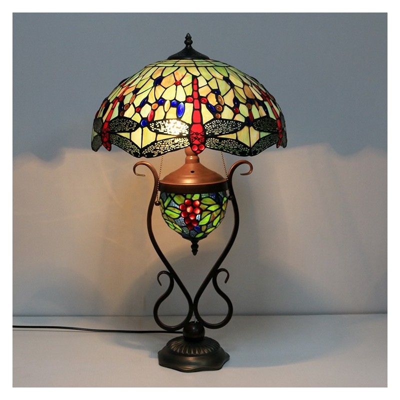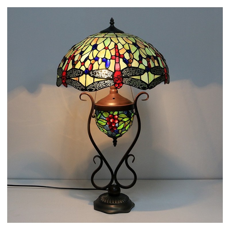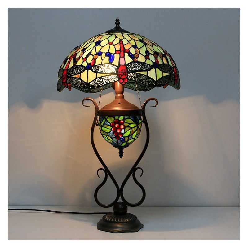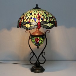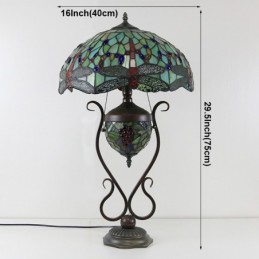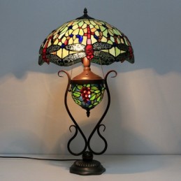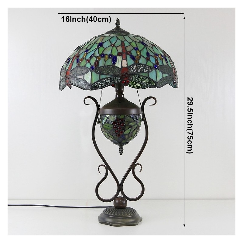 16 collu vintage Dragonfly Tiffany stila vitrāžas galda lampa ar dubultu apgaismojumu guļamistabai pie gultas mākslas