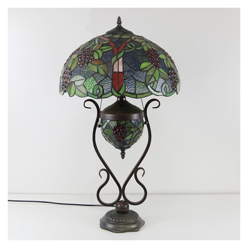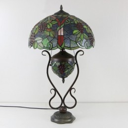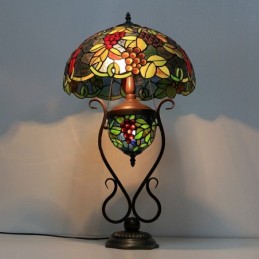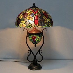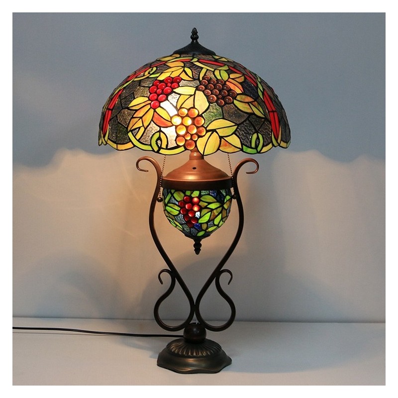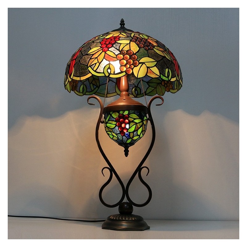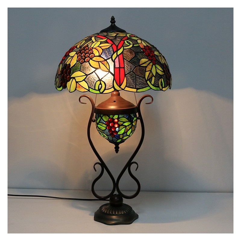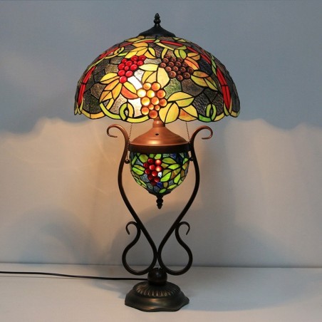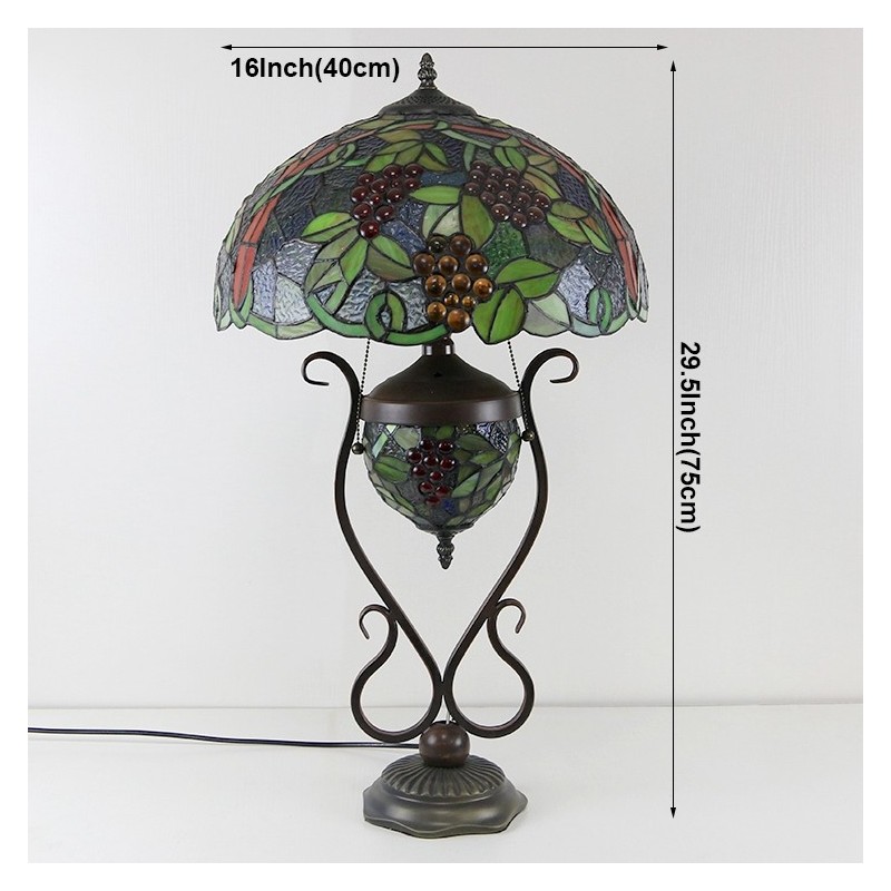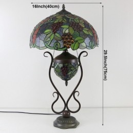 16 collu Es Vintage Grape Tiffany stila vitrāžas galda lampa ar dubultu apgaismojumu guļamistabai pie gultas mākslas