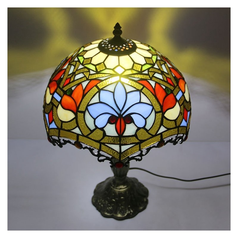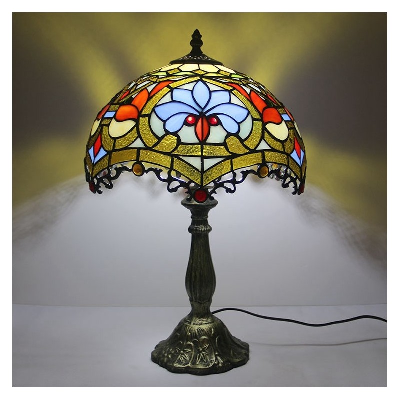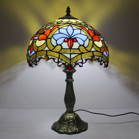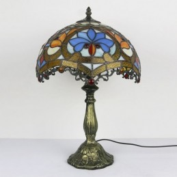 12 collu Tiffany lampas vitrāžas naktsgalda lampa antīka baroka stila lasāmgalda gaisma, 18 collu augsts