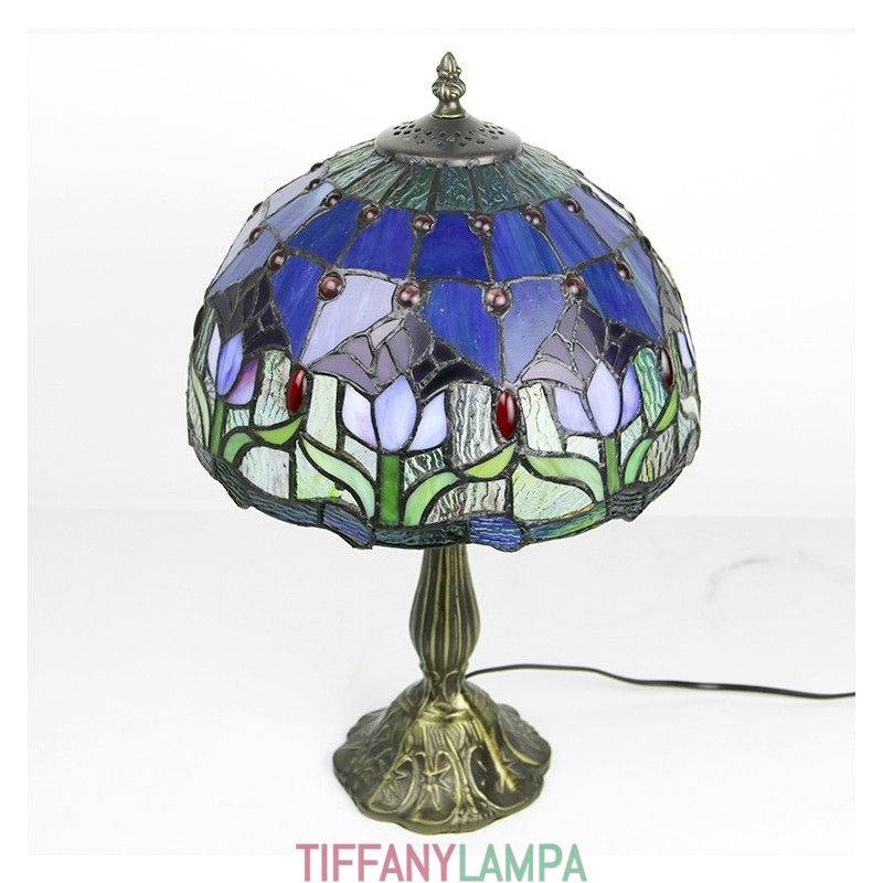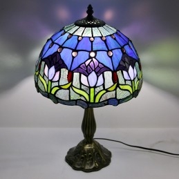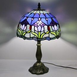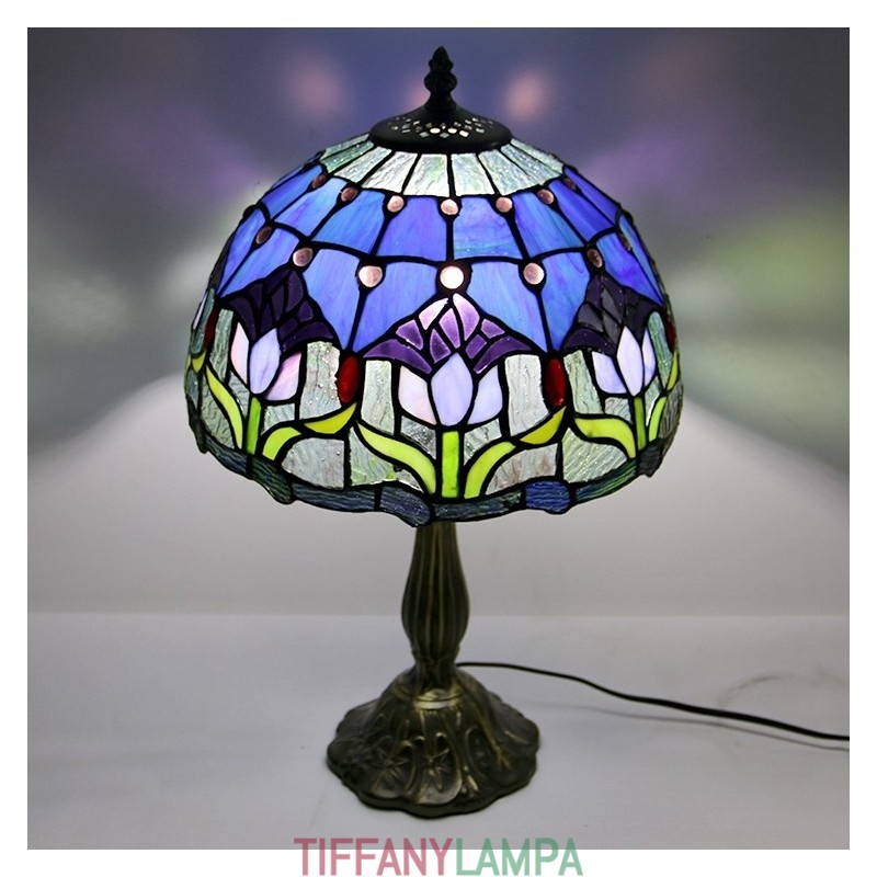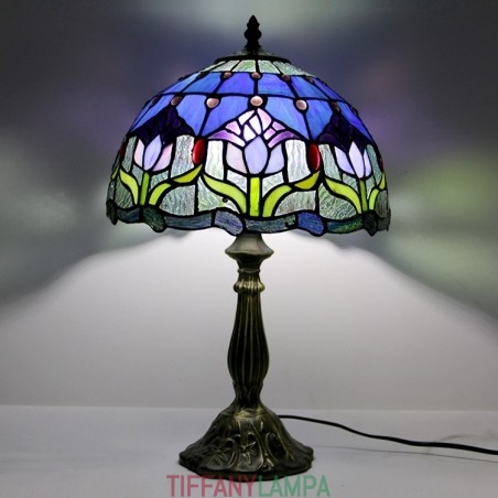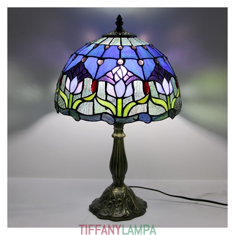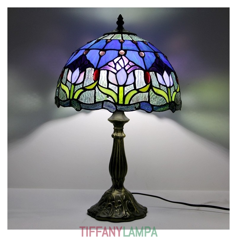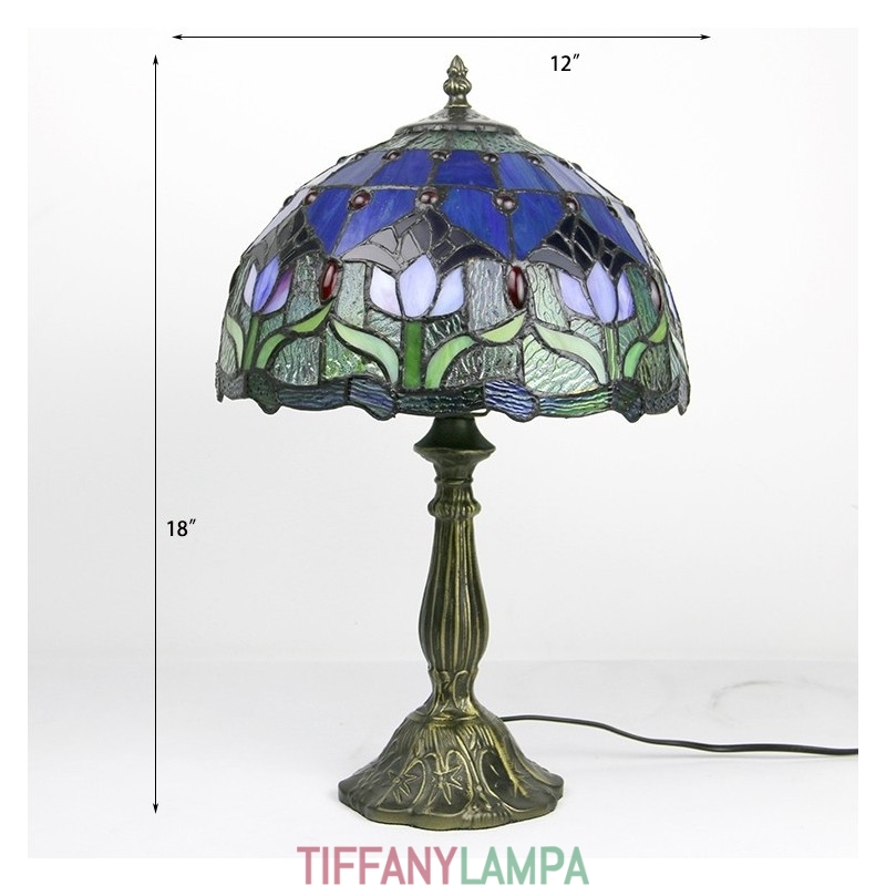 12 collu Tiffany lampas vitrāžas naktsgalda lampa antīka tulpju stila lasāmgalda gaisma 18 collu augsts
