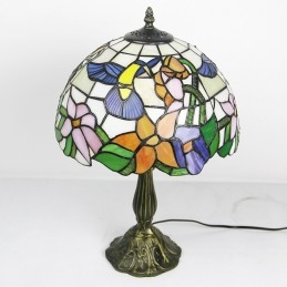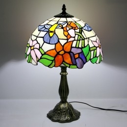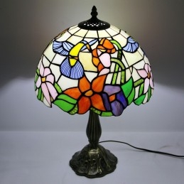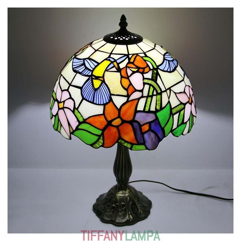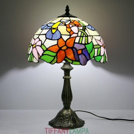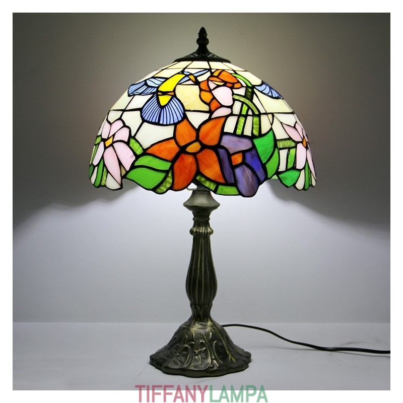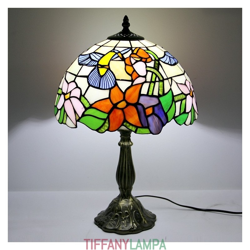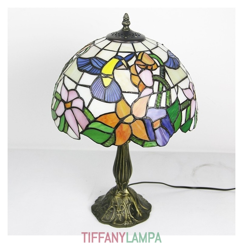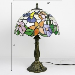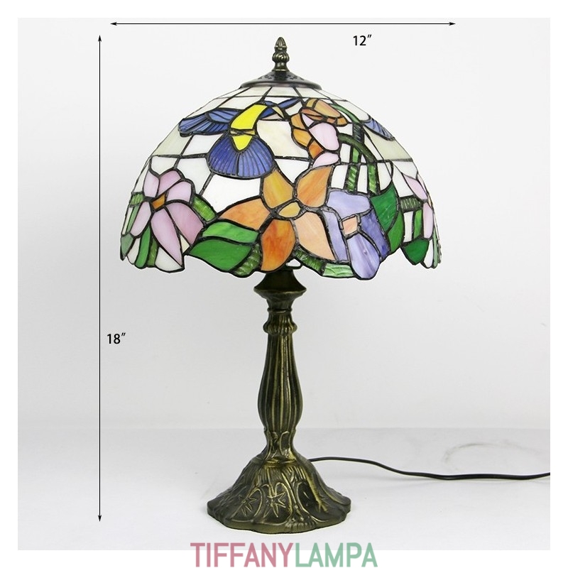 12 collu Tiffany lampas vitrāžas naktsgaldiņa lampa Putnu ziedu stila lasāmgalda gaisma, 18 collas augsts