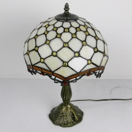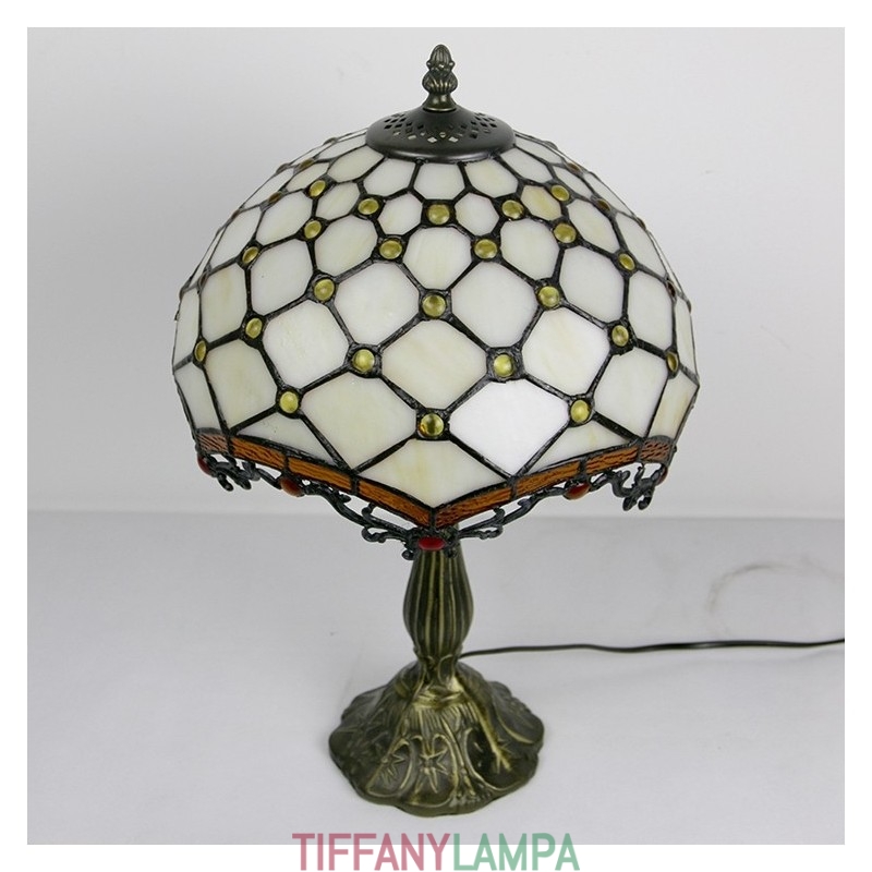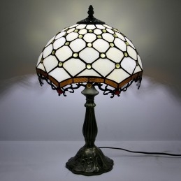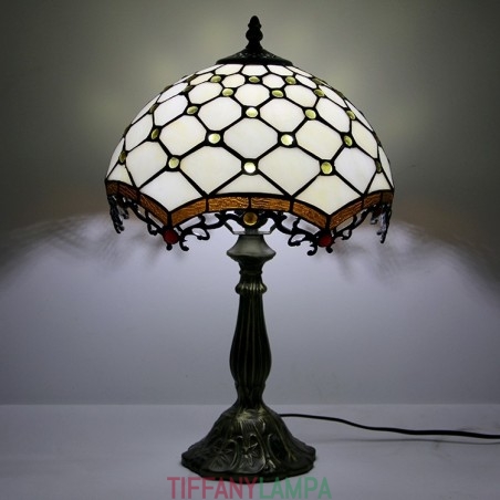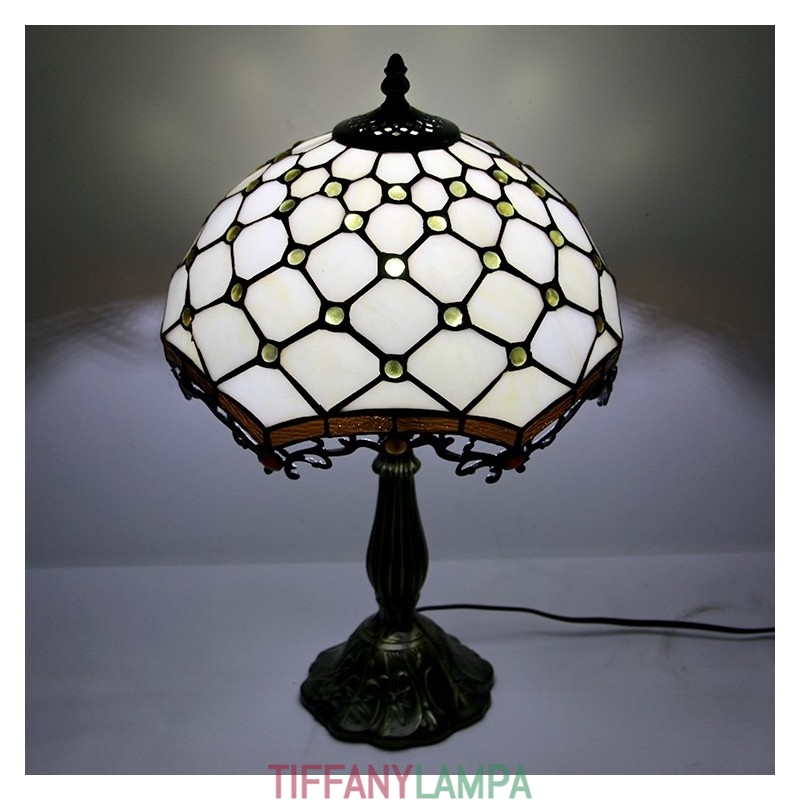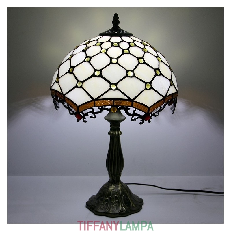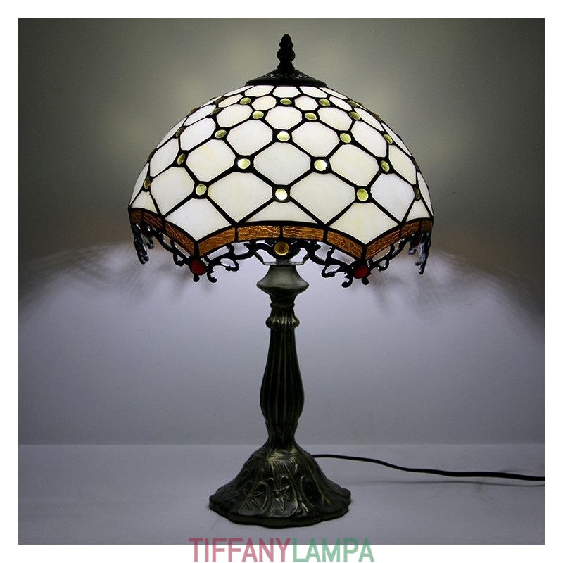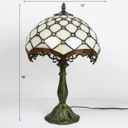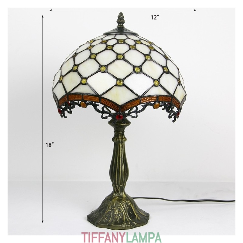 12 collu Tiffany lampas vitrāžas naktsgalda lampas krelles, baltas stila lasāmgalda gaisma, 18 collas augsts