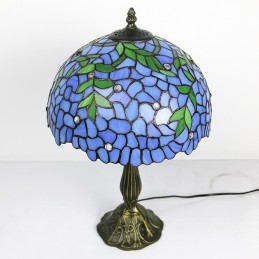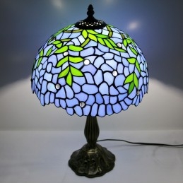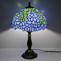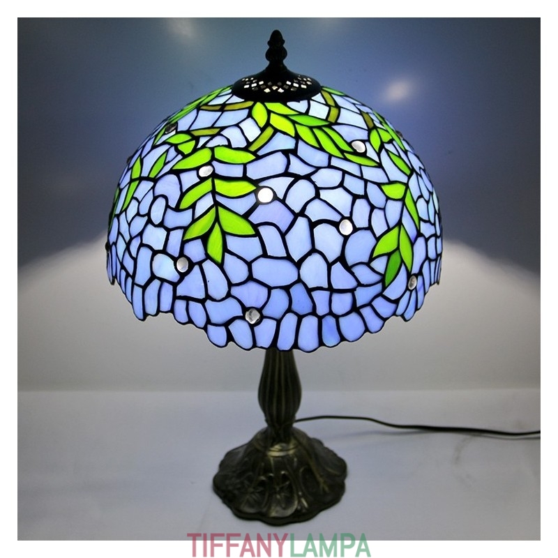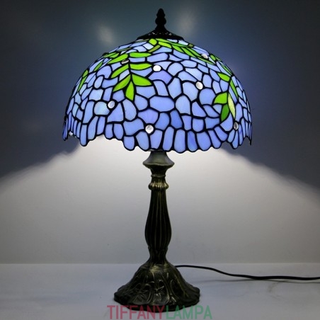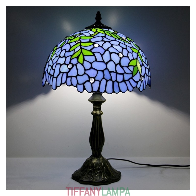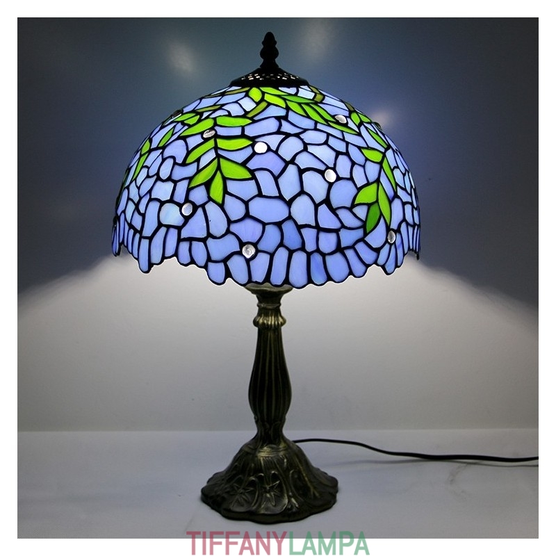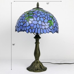 12 collu Tiffany lampas vitrāžas naktsgalda lampa Wisteria zila stila lasāmgalda gaisma 18 collu augsts