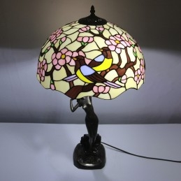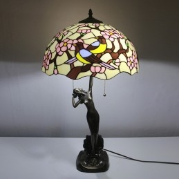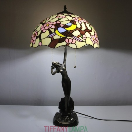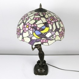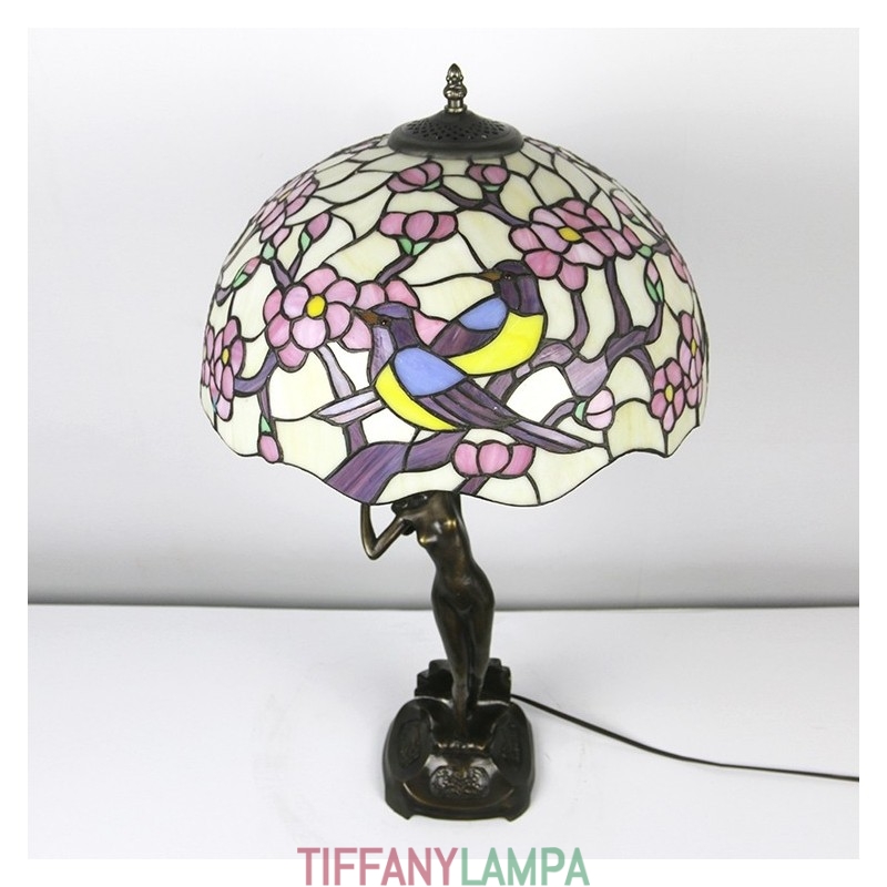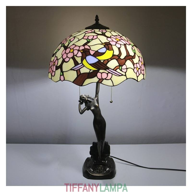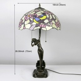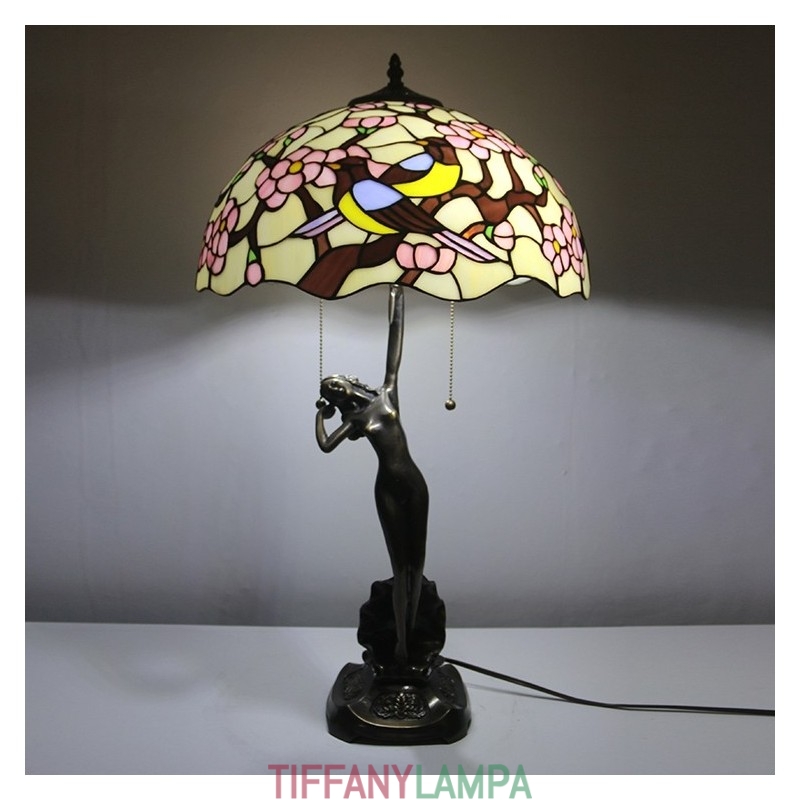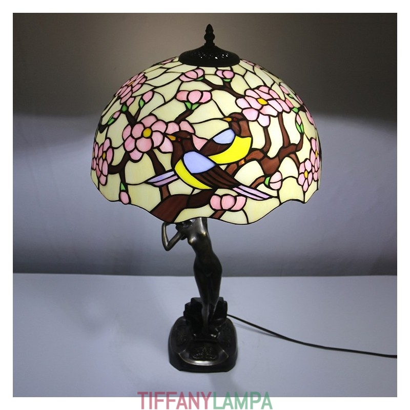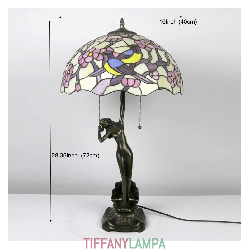 16 collu Tiffany lampas galda lampa divu putnu vitrāžas grezna baņķiera atmiņas lampa antīka vara pamatne