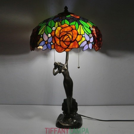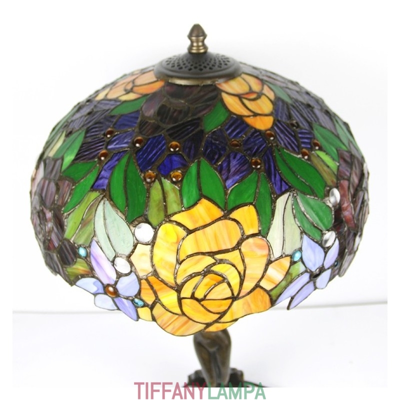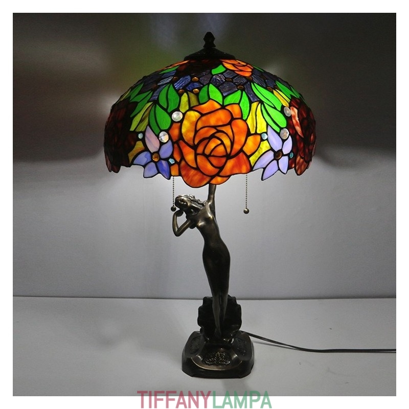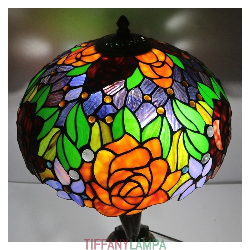16 collu Tiffany lampas galda lampa rozā vitrāžas grezna Banker atmiņas lampa antīka vara pamatne