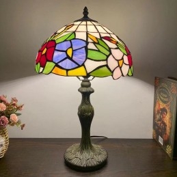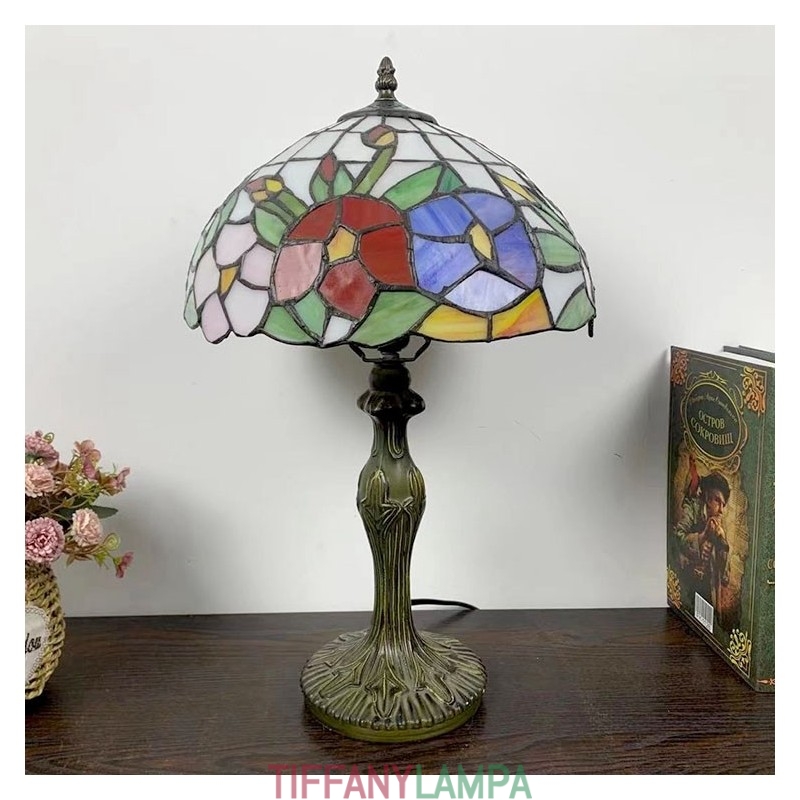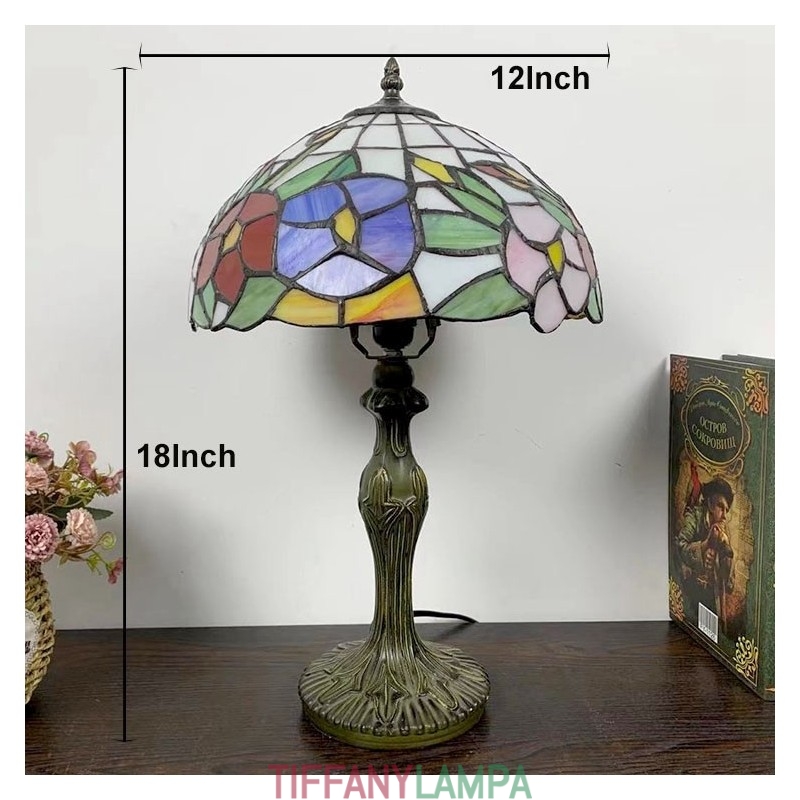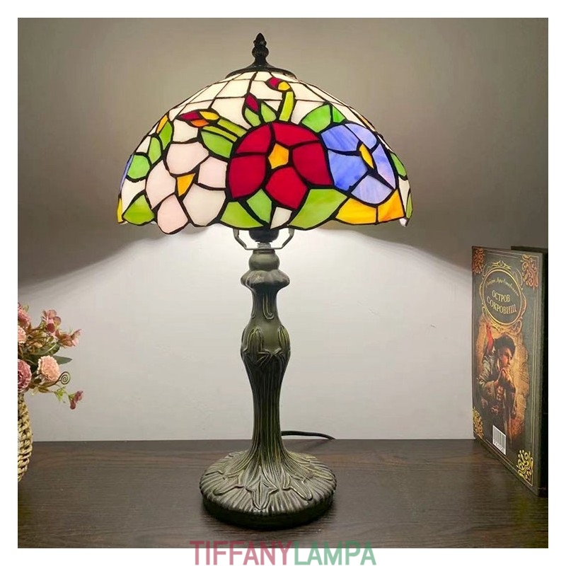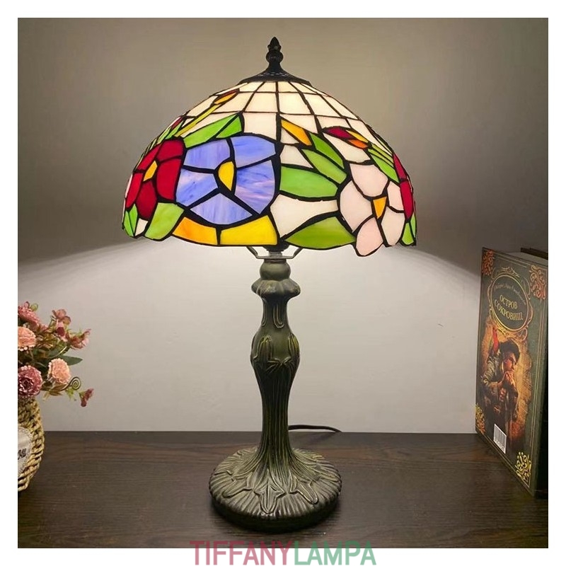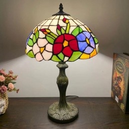 Tiffany stila galda lampa ziedu vitrāžas lampas galda apgaismojums 12W18H