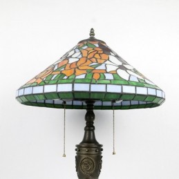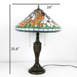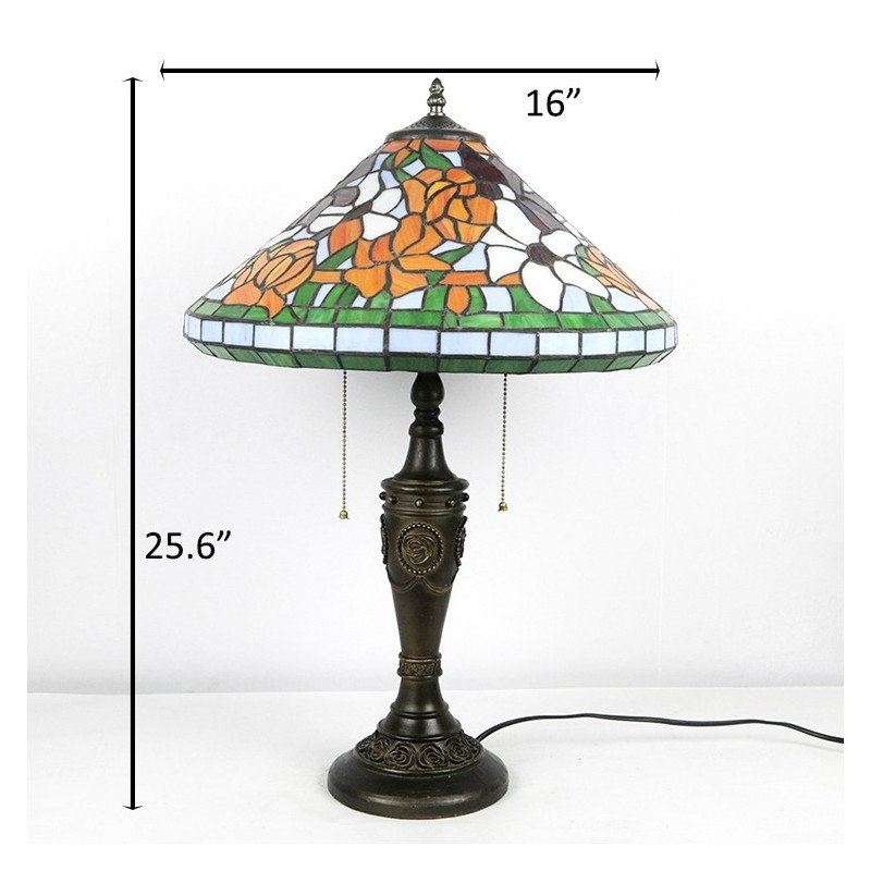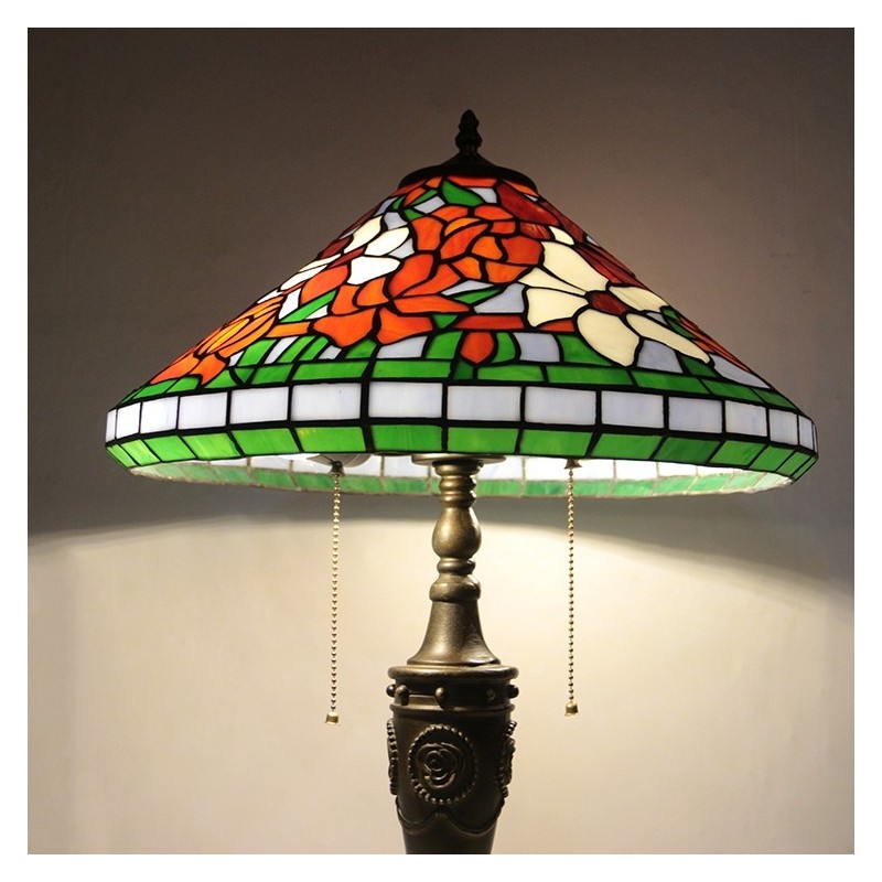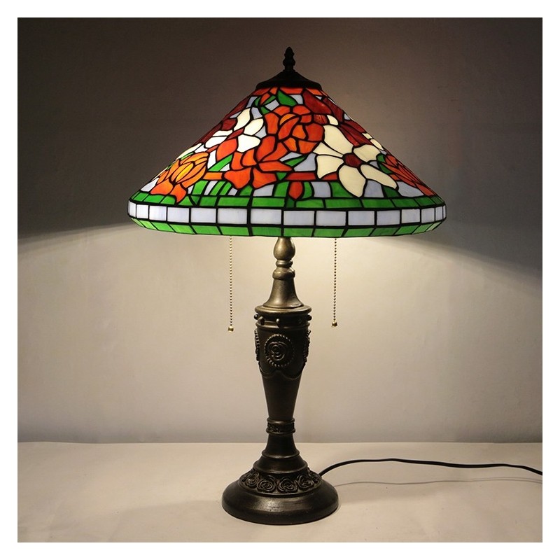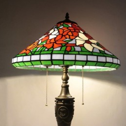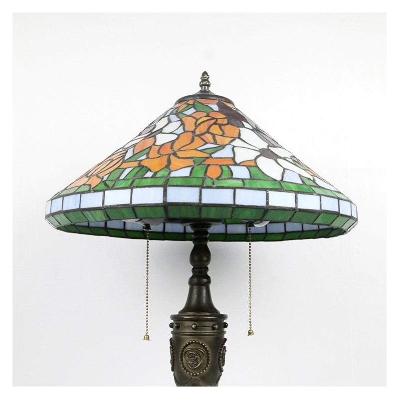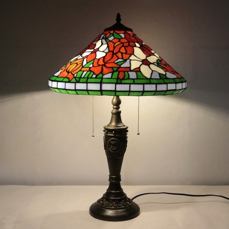 16 collu retro Tiffany galda lampa, vitrāžas konusa tonis, ziedi, lampas lukturi, rokām darināta stikla galda lampa