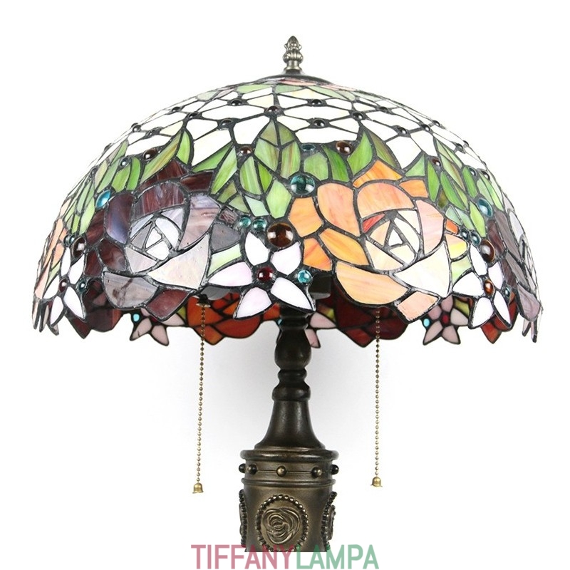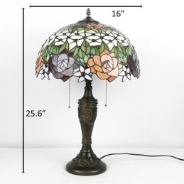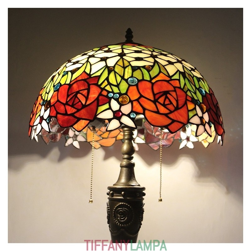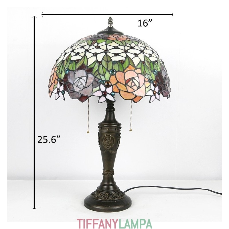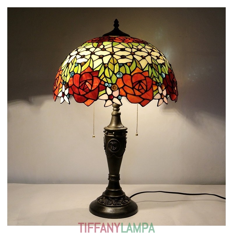 16 collu retro Tiffany galda lampa, vitrāžas mīlestības rozes, lampas lampas ar rokām darināta stikla galda lampa