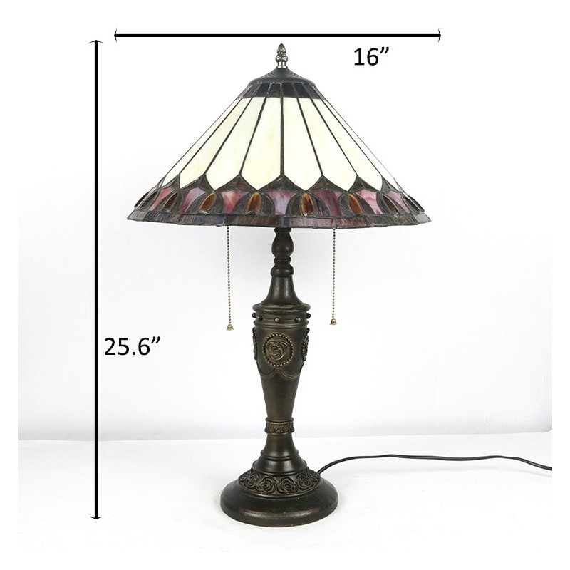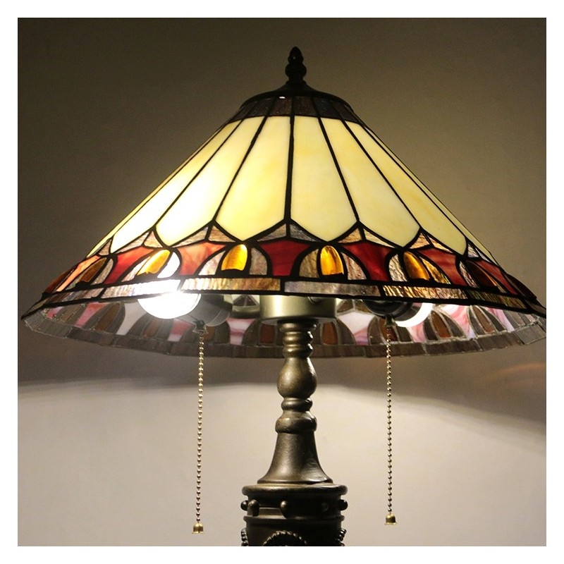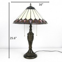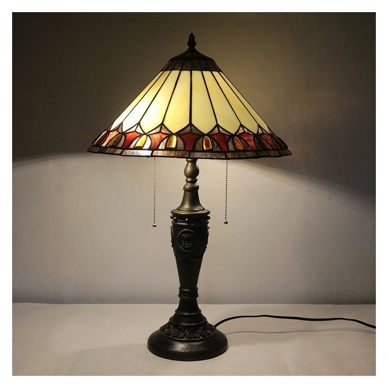 16 collu retro Tiffany galda lampa ar vitrāžu konusu, dzeltena lampas gaismas, rokām darināta stikla galda lampa
